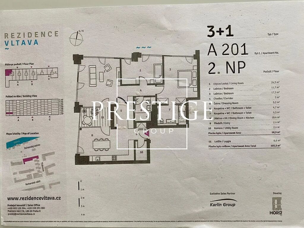 «PRESTIGE GROUP» nabízí k prodeji byt 3+kk s balkonem o velikosti 102,5 m2 , který se nachází v rezidence Vltava na Praze 8 - Karlín.