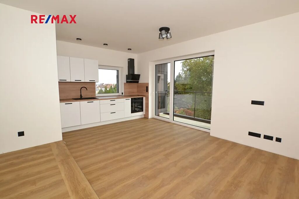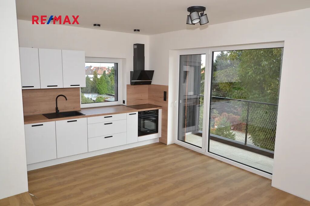 Byt čeká na svého prvního nájemce. Okna bytu včetně lodžie jsou orientována do zahrady se vzrostlými stromy, kterou nájemce může využívat k relaxaci.