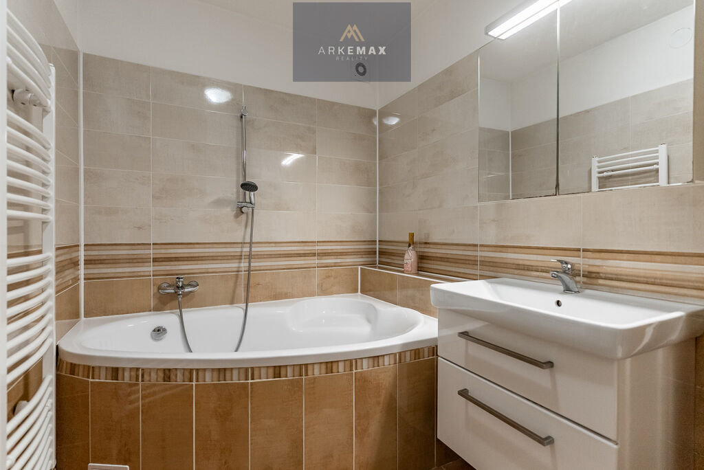 Z tohoto pokoje se dostanete na balkon, kde uvidíte celou zahradu za domem a les. Dále do obývacího pokoje spojeného s kuchyní o velikosti úctyhodných 28,5 m2. Z obýváku pak do ložnice o velikosti 13,5 m5 a s oknem orientovaným na jih. Dále přes chodbičku do koupelny a samostatného WC. Koupelna má plochu 5 m2 a je vybavena rohovou vanou.