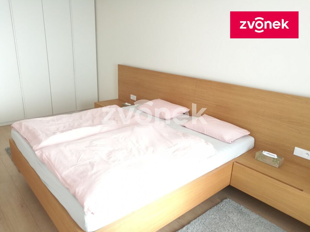 Dispozice a vybavení: Prostorný obývací pokoj s jídelnou a plně vybavenou kuchyní úspornými spotřebiči Bosch (lednice s mrazákem, myčka, trouba, sklokeramická deska, digestoř). Velká ložnice. Pracovna/pokoj. Koupelna s rohovou vanou a WC. V předsíni se nacházejí vestavěné skříně a botník, které poskytují dostatek úložného prostoru.