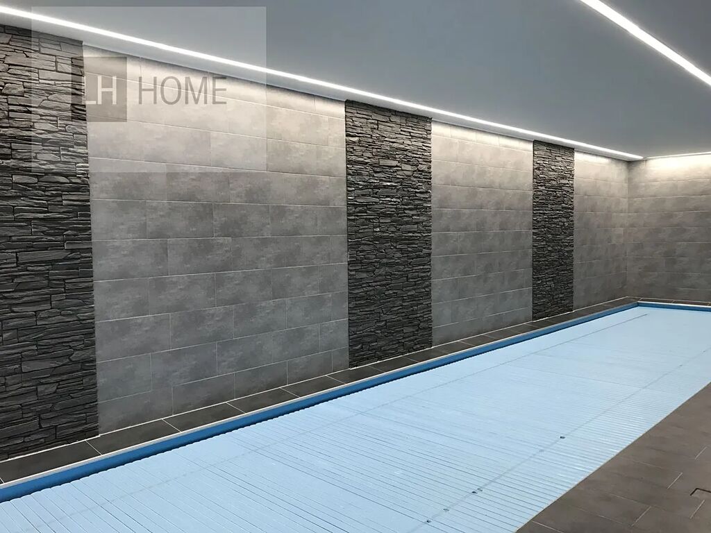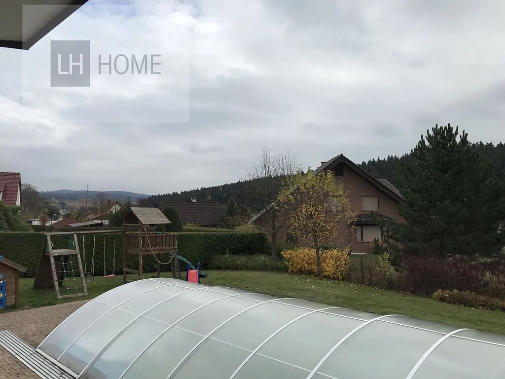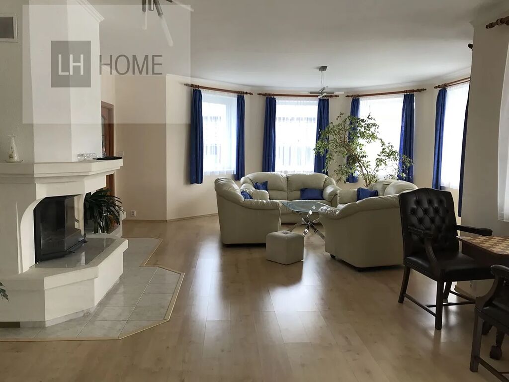 První dům 5+1, dvě samostatné koupelny, šatnu a pracovnu. V domě je prostorná jídelna s krbem a terasa směrem do zahrady k venkovnímu bazénu. Podlahová plocha domu je 340 m2. Vytápění tepelným čerpadlem. Venkovní bazén je vytápět solárním ohřevem.
