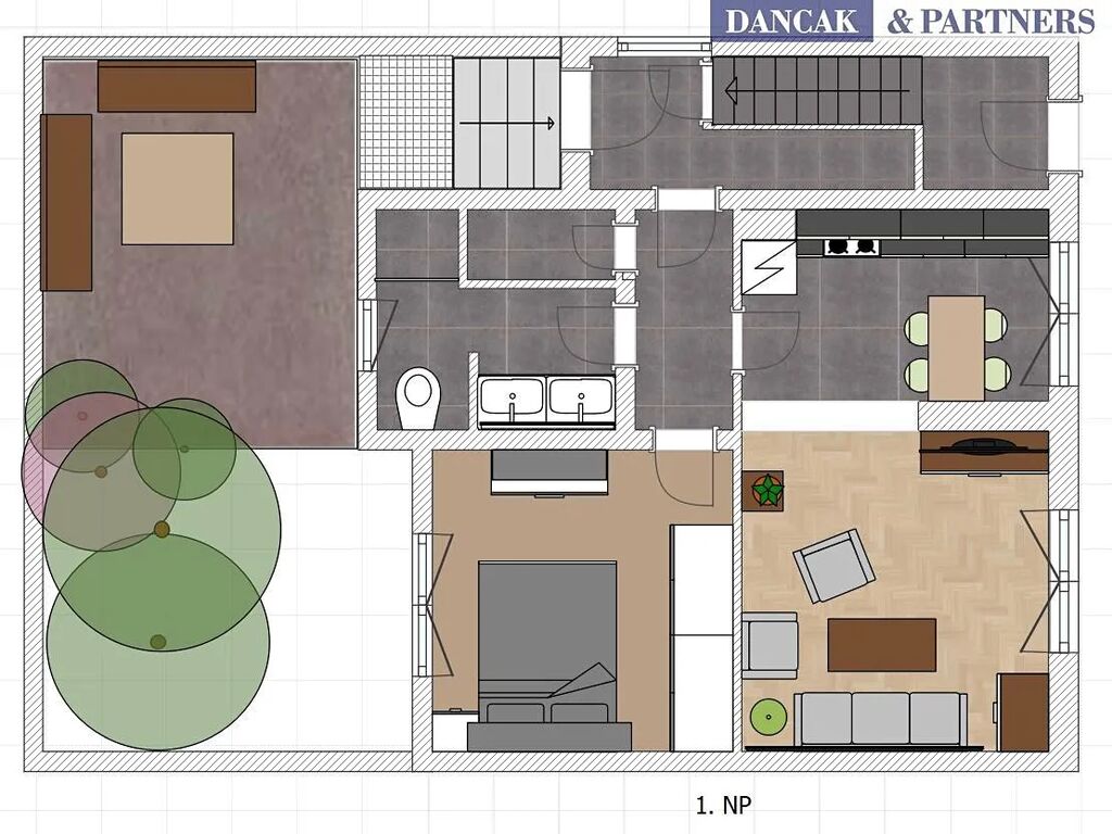 Je ze dvou třetin podsklepená a před 9ti lety prošla kompletní rekonstrukcí, kterou mimo zateplení, výměny oken, rozvodů a dalšího, došlo ke změně dispozice. Byly vytvořeny dvě samostatné, na sobě nezávislé bytové jednotky 2+kk, každá o výměře 54m2.