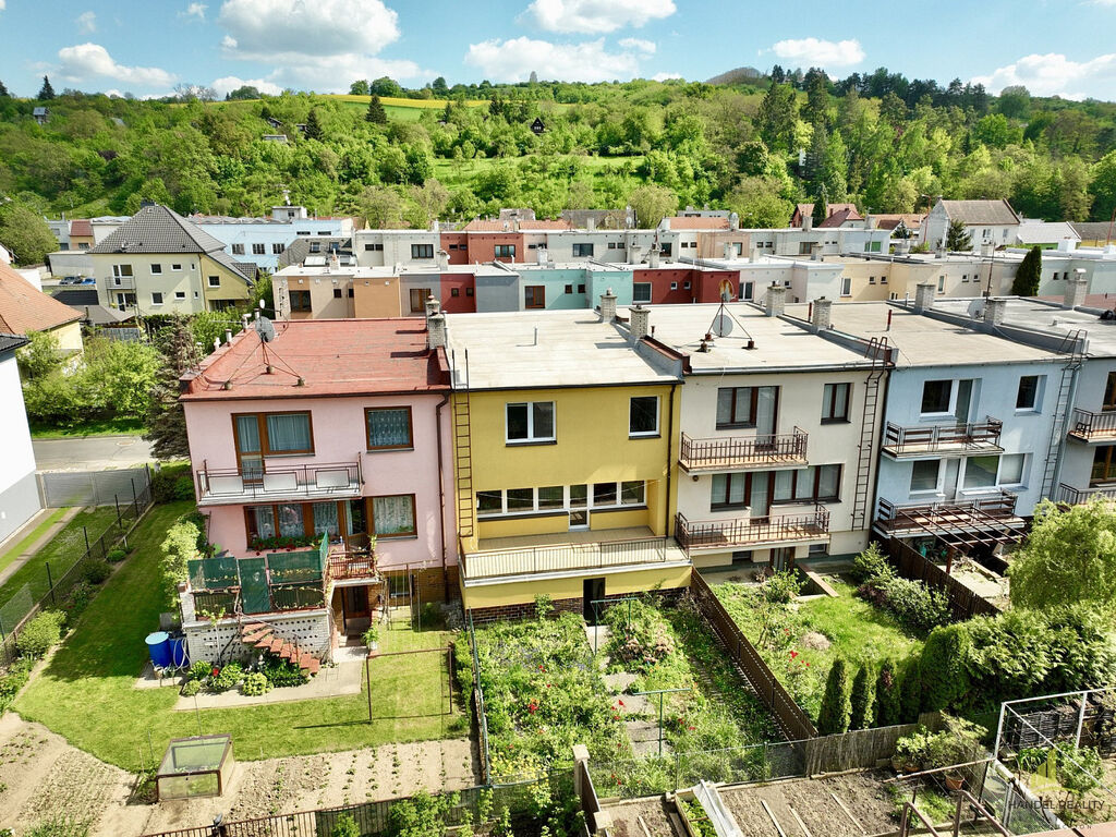 Nemovitost je kompletně podsklepena, přičemž suterén nabízí dvě technické místnosti, dva sklepy, koupelnu a přímý vstup do prostorné garáže i na zahradu, což výrazně zvyšuje komfort užívání. V přízemí se nachází mimořádně velký obývací pokoj s možností vybudování krbu, který je propojen s terasou orientovanou na severozápad a nabízí příjemný výhled do zahrady. Kuchyně s jídelním koutem je plně vybavena spotřebiči, přičemž v patře se nachází ještě jedna menší kuchyně, kterou lze snadno přeměnit na další obytný pokoj.