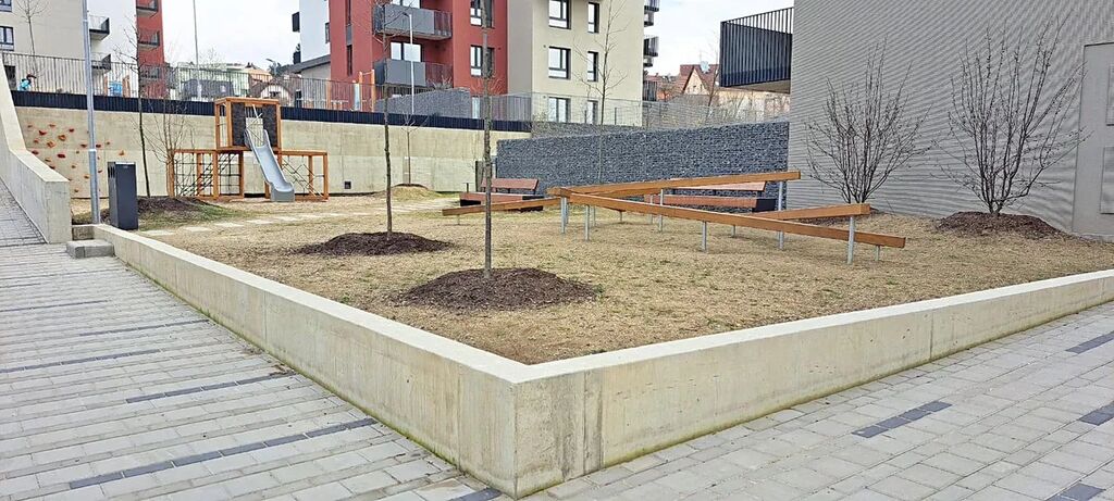 Projekt disponuje veřejným dětským a tréninkovým hřištěm.