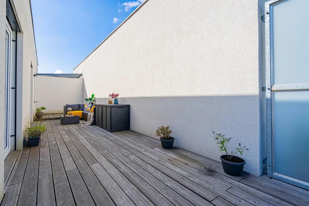 Z obývacího pokoje i ložnice je přímý vstup na terasu, která bytu dodává jedinečný charakter. Okna jsou navíc vybavena předokenními žaluziemi, které zajišťují soukromí i tepelný komfort.