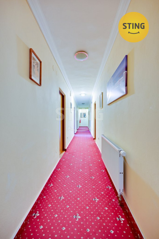 Jedna místnost, náležící k zázemí a disponující vlastním vchodem a částí terasy, nabízí možnost přebudování na menší kavárnu / cukrárnu i se samostatnou recepcí pro hotel.
