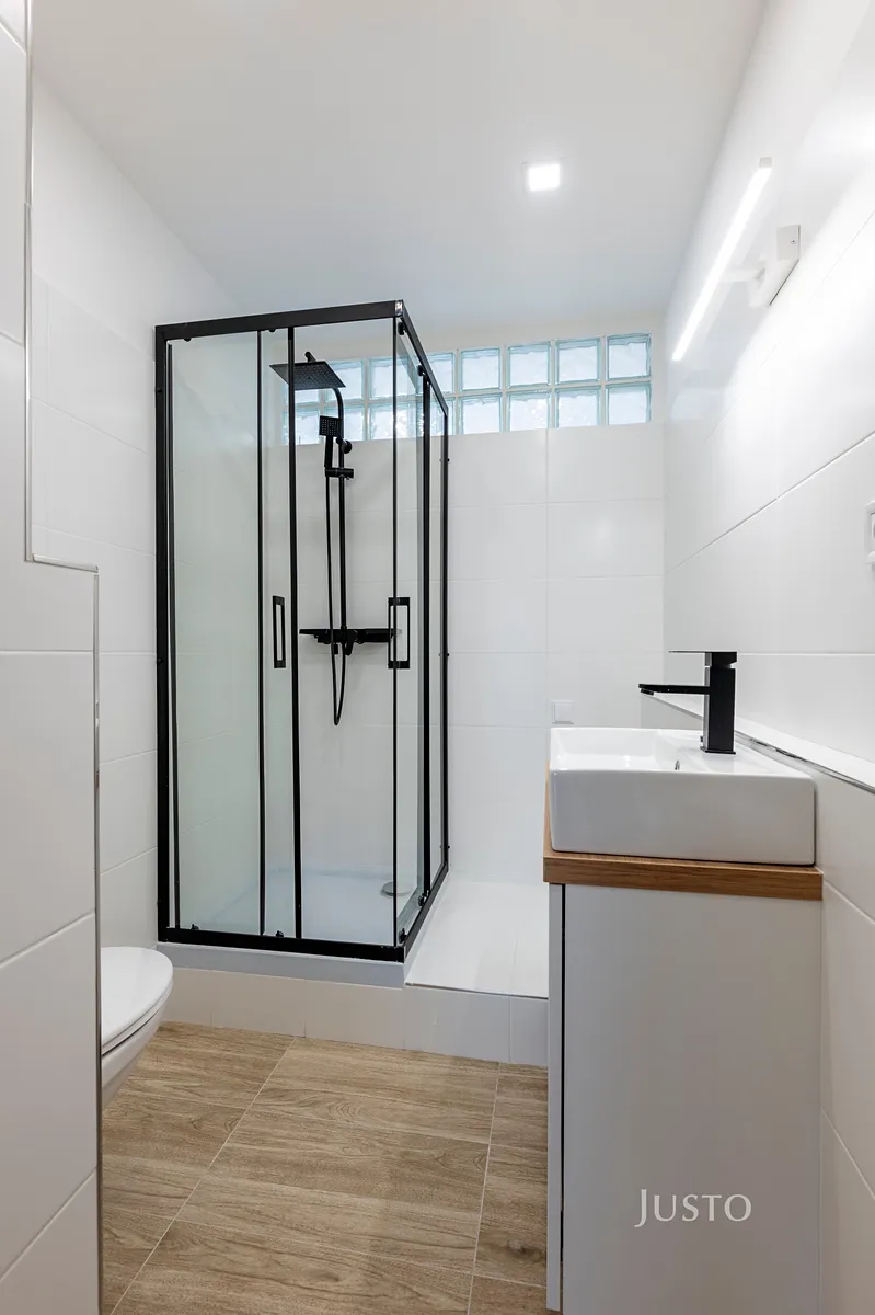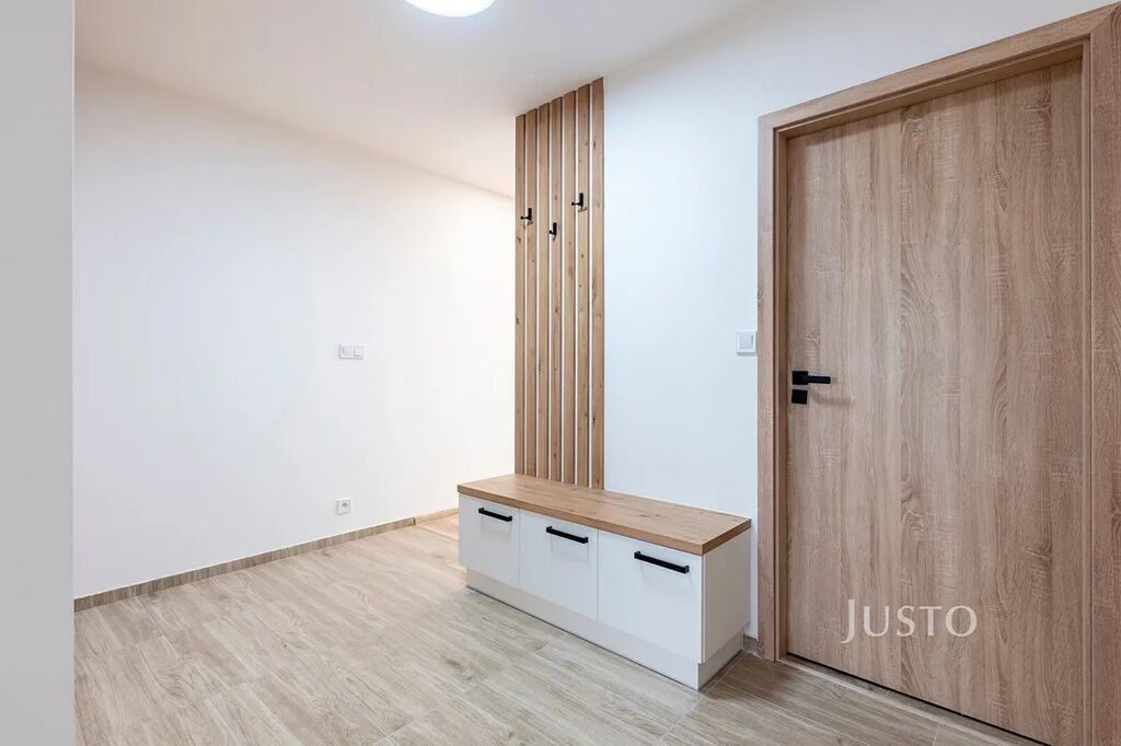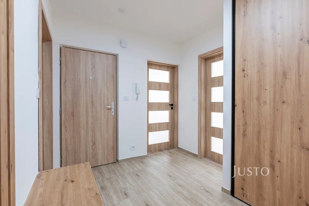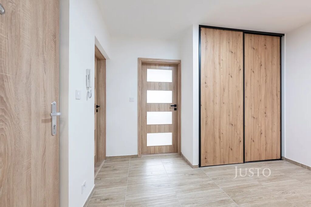 Vše laděno v příjemných neutrálních tónech s důrazem na funkčnost a čistý design. Plastová okna a zateplení budovy zajišťují nízké náklady na bydlení, energetická třída C – úsporná.