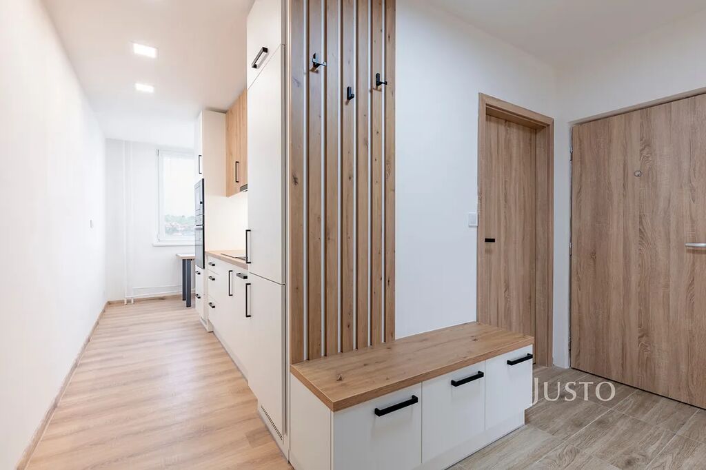 Dispozice bytu nabízí praktické rozdělení místností s dostatkem úložného prostoru, součástí je také sklep o ploše 2 m².