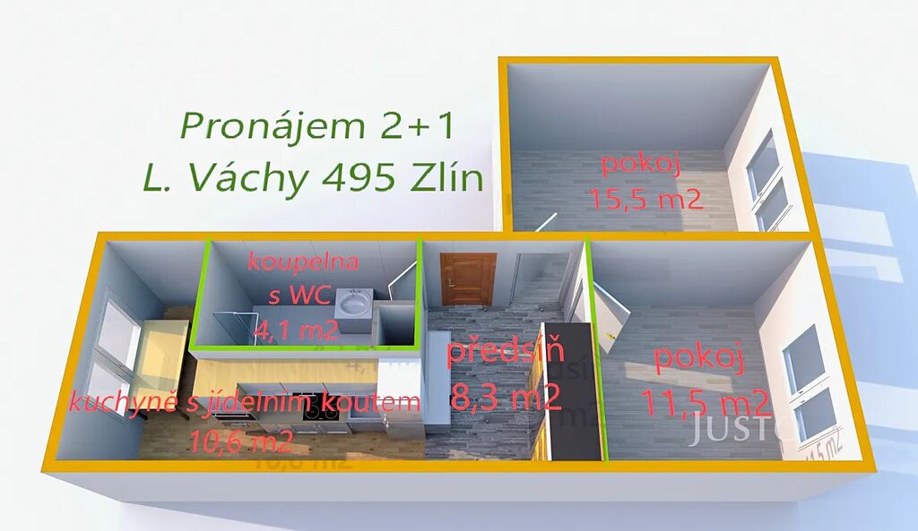 Ve výhradním zastoupení majitele nabízíme k pronájmu byt o dispozici 2+1 s užitnou plochou 54 m², který se nachází v panelovém domě na ulici L. Váchy ve Zlíně, části Prštné.