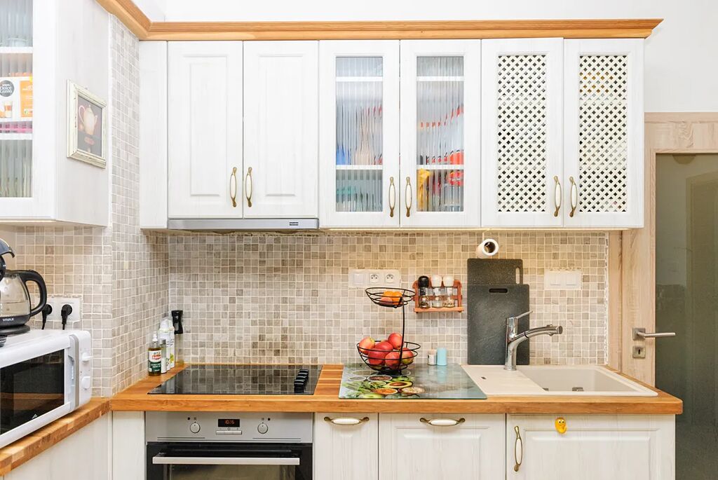 Obývací pokoj s kuchyňským koutem (21,8 m²), orientovaný na severozápad, je světlý a vzdušný, s přímým vstupem na terasu a zahrádku (63 m²), které poskytují ideální místo pro relaxaci, posezení s přáteli i dětské hry. Kuchyňský kout je plně vybaven všemi spotřebiči: indukční varná deska, digestoř, elektrická a mikrovlnná trouba a myčka nádobí.