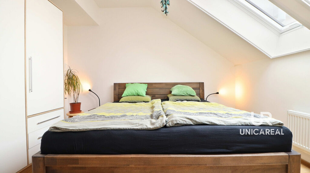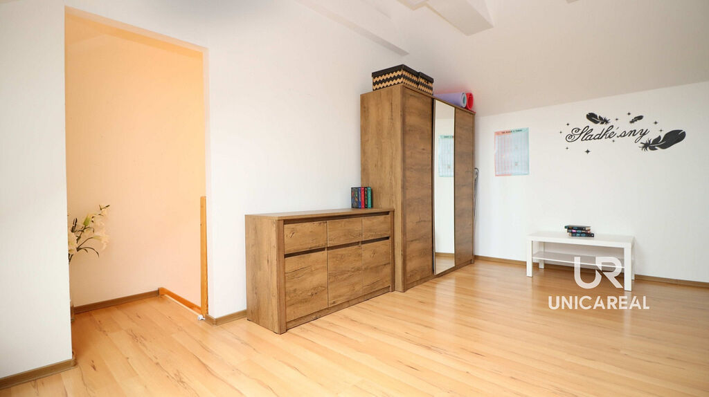 • Po dřevěném schodišti z obývací části se dostanete do útulného podkrovního pokoje.