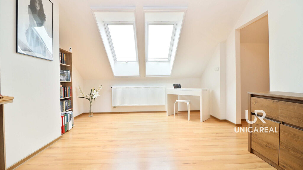 • V přízemí bytu se nachází také koupelna s vanou, sprchovým koutem a toaletou, praktická šatna.