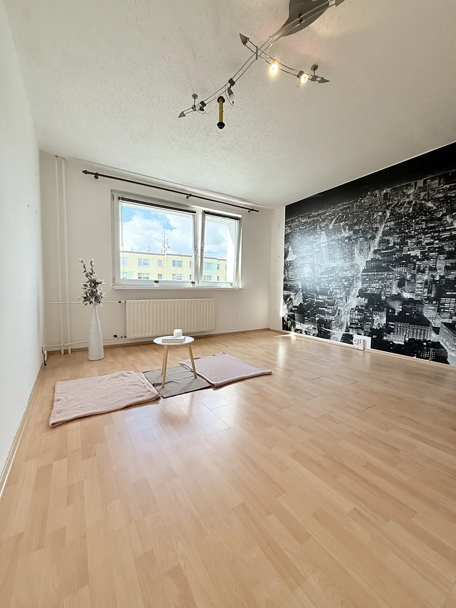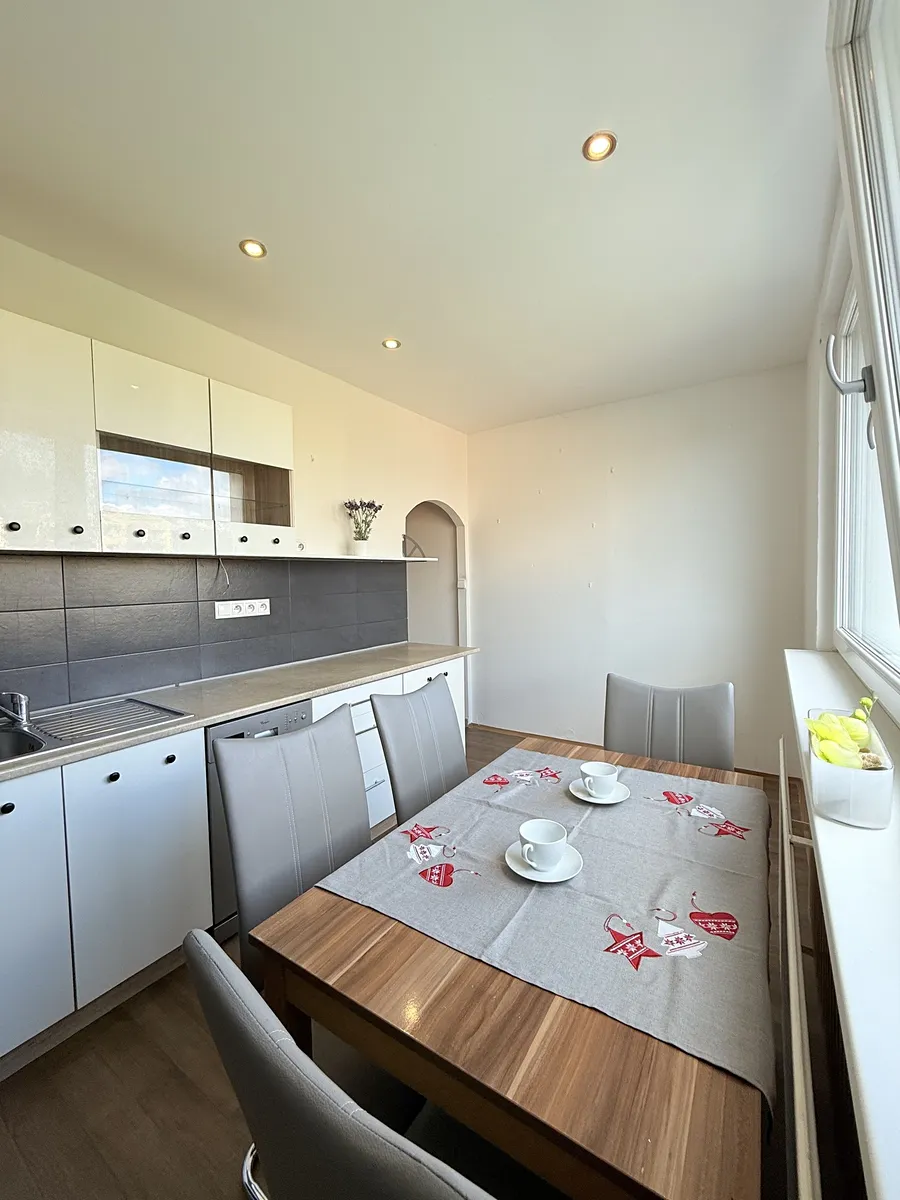 Byt je v udržovaném stavu s krásným výhledem do zeleně.
