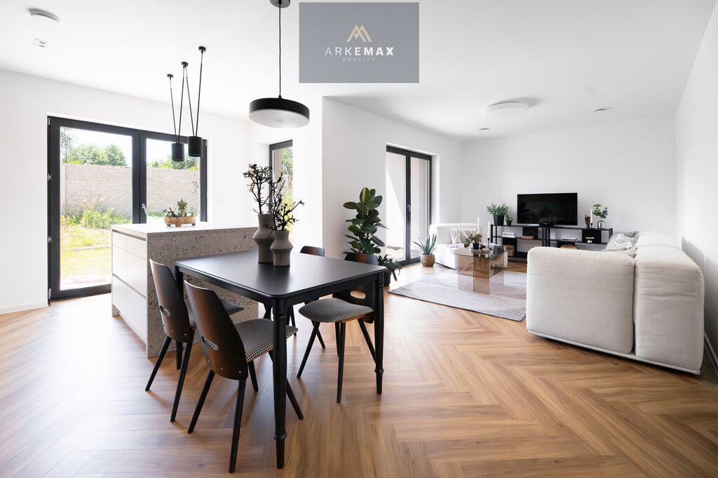 * Prostorná kuchyň spojenou s obývacím pokojem, ideální pro rodinné setkání a společné chvíle.