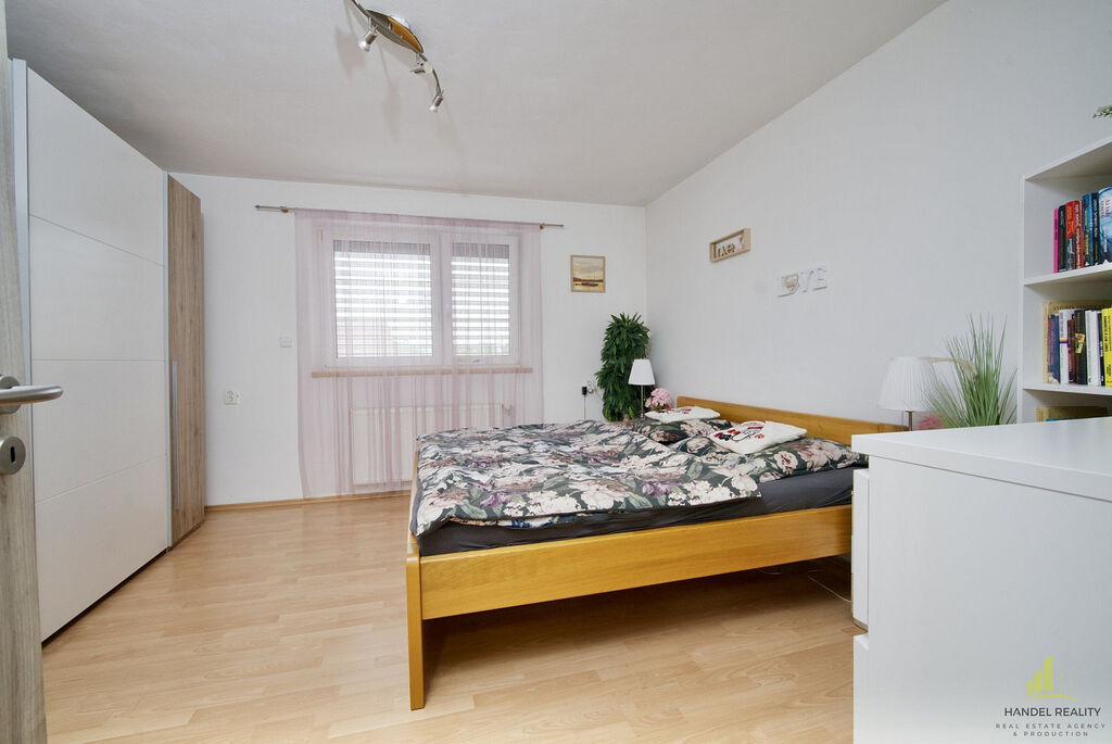 • Do patra vás zavedou elegantní dřevěné točité schody; zde je druhá koupelna (po rekonstrukci v roce 2023), ložnice a další obývací pokoj.