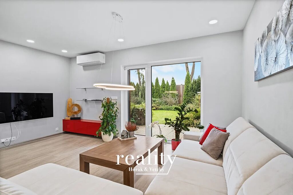 Nabízíme k prodeji moderní řadový rodinný dům 4+kk nacházející se v krásném prostředí v blízkosti přírody u rybníka Borovinka. Jedná se o velmi úspornou budovu (energetická náročnost B), zkolaudovanou v září 2018. Dům je ve špičkovém stavu a k prodeji se nabízí včetně moderního designového nábytku navrženého interiérovým studiem a včetně vestavěných spotřebičů – stačí se jen nastěhovat.