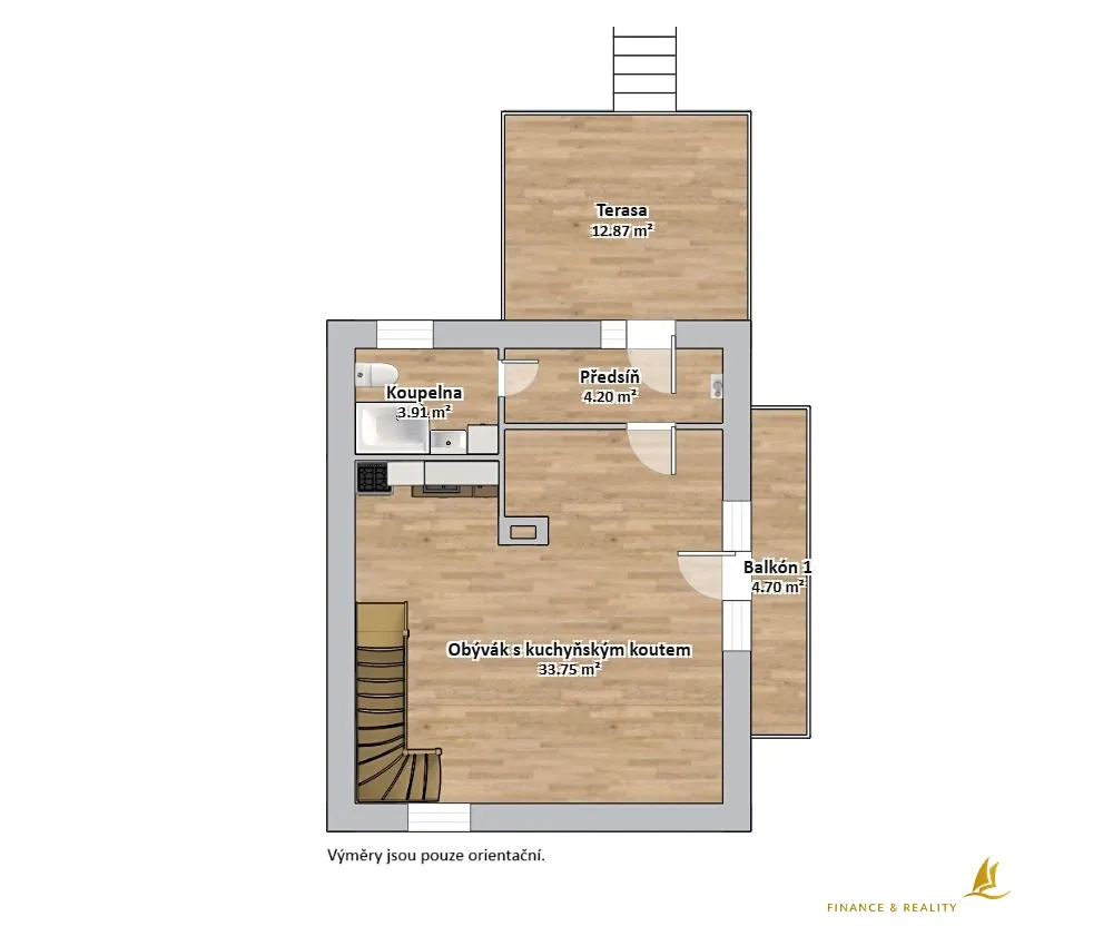 • Obývací pokoj s kuchyňským koutem, přístup na zasíťovaný balkon pro mazlíčky