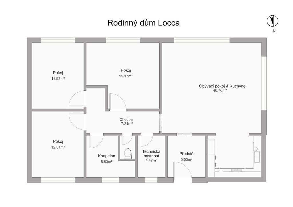 prostorný obývací pokoj s kuchyňským koutem (přirozené centrum rodinného života),