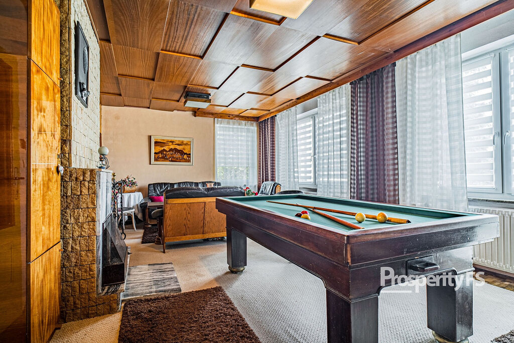Nabízíme k prodeji úžasný dvoupatrový dům v Prostřední Suché, který je ideální pro velkou rodinu nebo menší firmu. Nemovitost je celá podsklepená, což vytváří dostatek prostoru pro vaše potřeby. V přízemí se nachází velký obývací pokoj s funkčním krbem, prostorná kuchyň se vstupem na zahradu a další společenská místnost. O patro výše jsou čtyři pokoje a samostatná kuchyň. Každé podlaží disponuje prostorným balkónem, samostatnou koupelnou a toaletou. Topení zajišťuje plynový kotel. K domu patří velká garáž a přístřešek na auto s kapacitou pro osm vozidel.