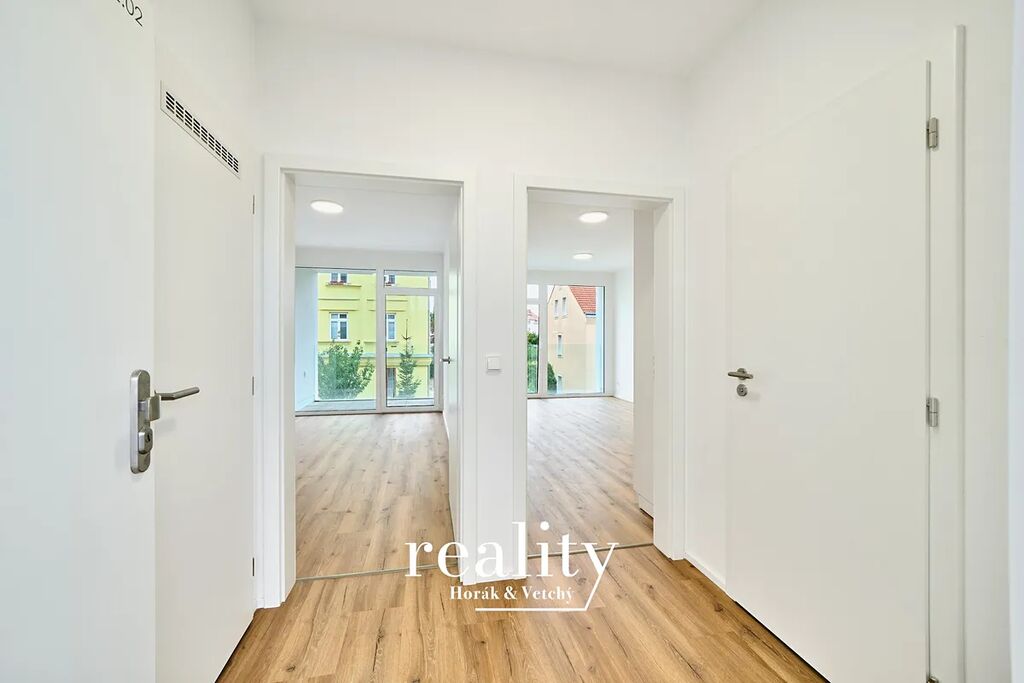 Součástí bytu je také prostorná sklepní kóje. Je možné si pronajmout i garážové stání v podzemní garáži rezidence (+ 1500 Kč/měsíc).