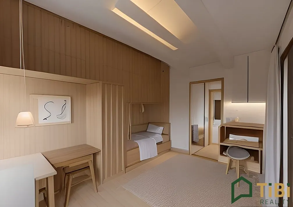 Byt leží v přízemí zrevitalizovaného (zateplení, nová střecha) cihlového bytového domu. Je v původním, neudržovaném stavu. Dispozičně je tvořen jedním pokojem sloužící jako ložnice a dalšího, který je uveden jako kuchyně, ale je možné si s dispozicí pohrát a vytvořít tak 2+kk.
