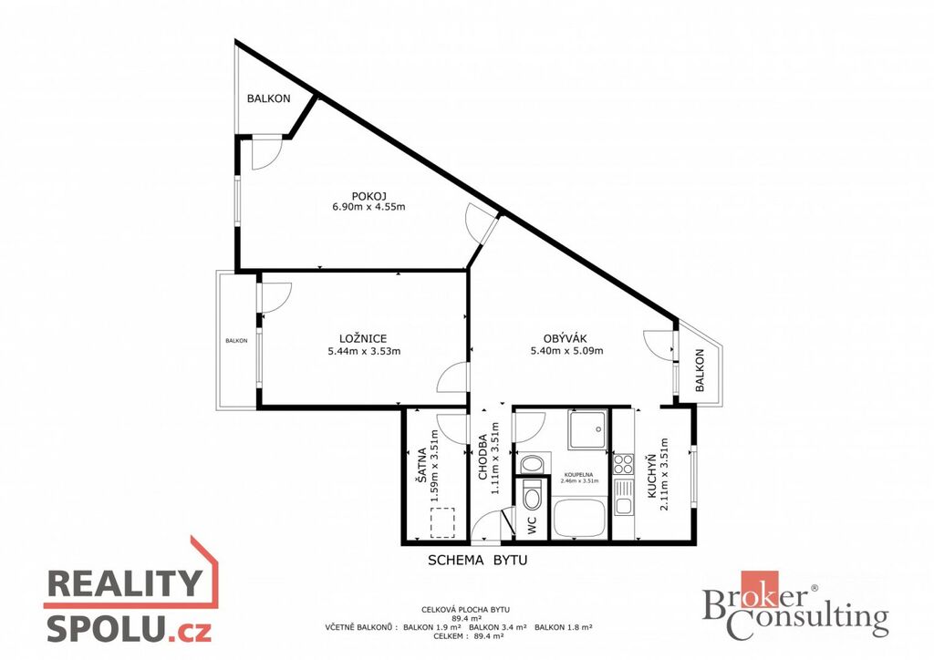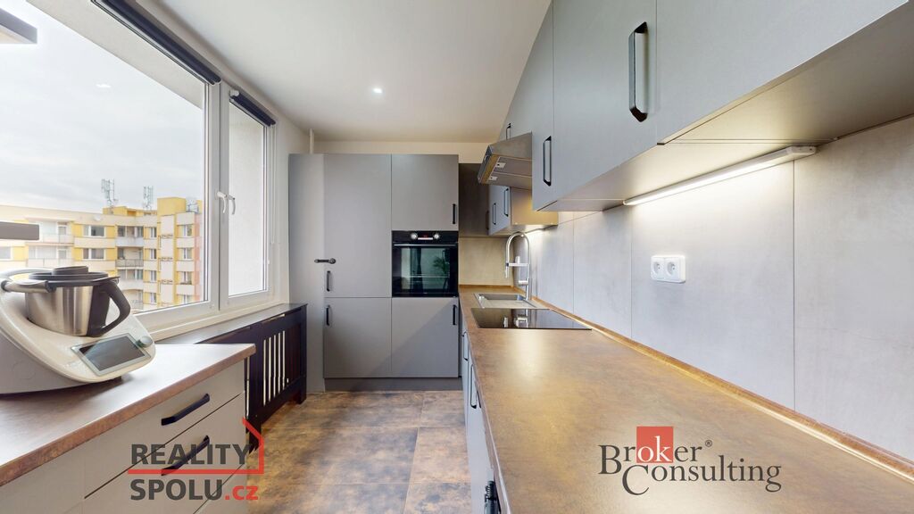Byt se pyšní třemi balkóny, v roce 2024 prošel rozsáhlou rekonstrukcí a náleží k němu komora v mezipatře a sklep. V ceně bytu je zahrnuta kuchyňská linka včetně vestavěných spotřebičů (myčka, trouba, lednice, indukční deska) a dalšího základního vybavení.