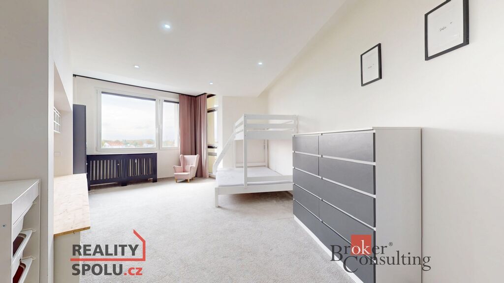 Byt o dispozici 3+1 se nachází v 9. nadzemním podlaží udržovaného panelového domu s výtahem. Díky své poloze nabízí nádherný panoramatický výhled na město i okolní zeleň, dostatek denního světla a příjemné soukromí.