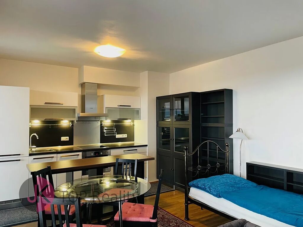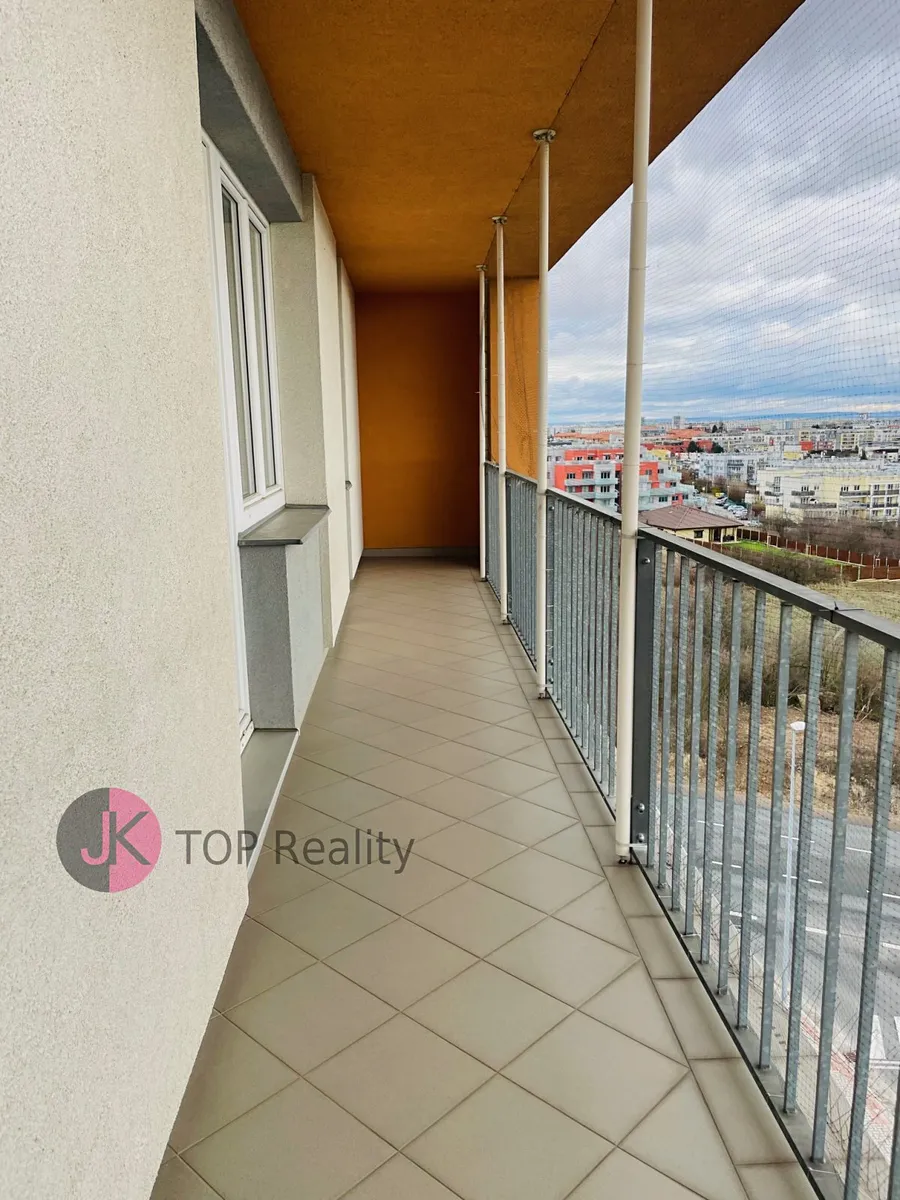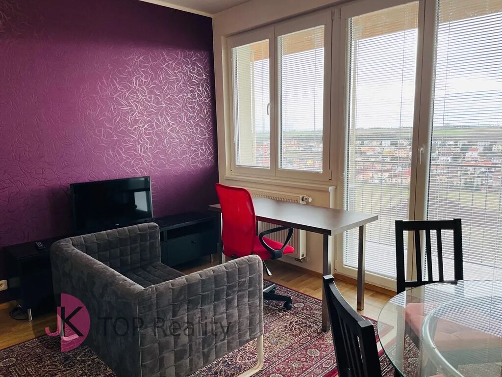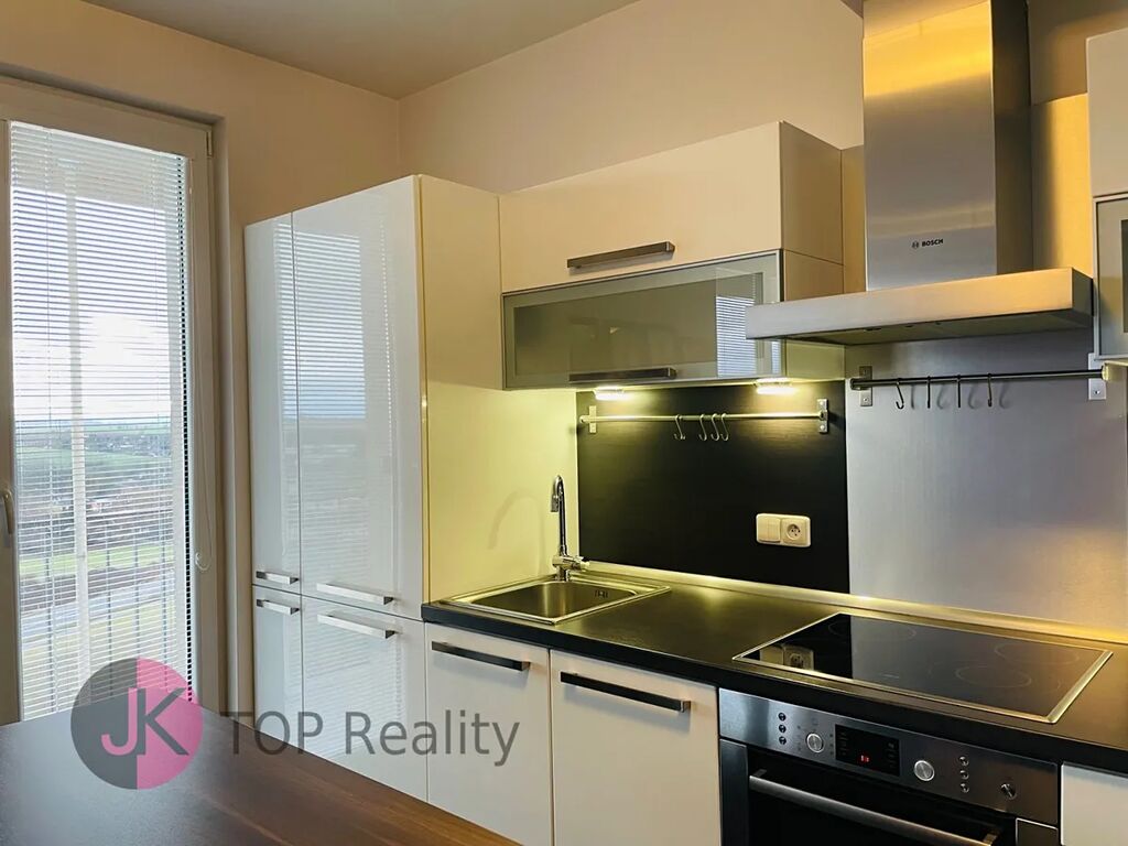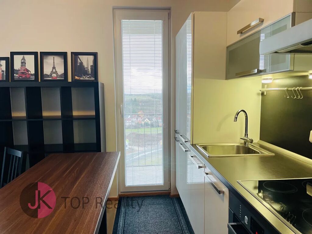 Exkluzivně nabízíme k pronájmu krásný byt s dispozicí 1+kk a rozloze 39,3 m2 + lodžie 15,2 m2 s nádherným výhledem, nacházející se v posledním 5. patře novostavby s výtahem. Byt je světlý, nízkoenergetický a orientovaný na jih. Byt je kompletně vybavený – nová kuchyňská linka s vestavěnými spotřebiči (sklokeramická deska, trouba, digestoř, myčka na nádobí, lednice s mrazákem). V obývacím pokoji jídelní stůl se židlemi, skříně, komody, postel, sofa, pracovní stůl se židlemi, TV stolek a TV. V Předsíni vestavěná šatní skříň, dále samostatná šatní skříň, botník, komoda. V koupelně rohová vana, umyvadlo se zrcadlem, WC a pračka. V bytě se nachází komora, vybavena regály. Rozměry místností: obývací pokoj + kk 24,1 m2, předsíň 7,7 m2, koupelna s WC 5,1 m2, komora 2,4 m2, lodžie 15,2 m2. Atraktivní lokalita s dobrou dostupností do centra města a s veškerou občanskou vybaveností v místě – škola, školka, restaurace, obchody aj. Výborná dostupnost MHD – 3 busem na metro „B“ Stodůlky nebo 8 min na metro „B“ Luka. Volné ihned. V případě zájmu kontaktujte realitního makléře.