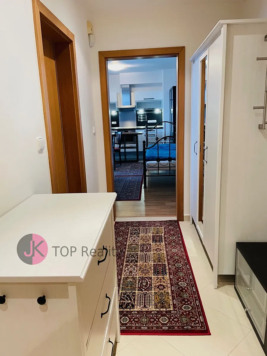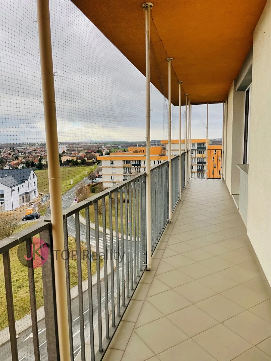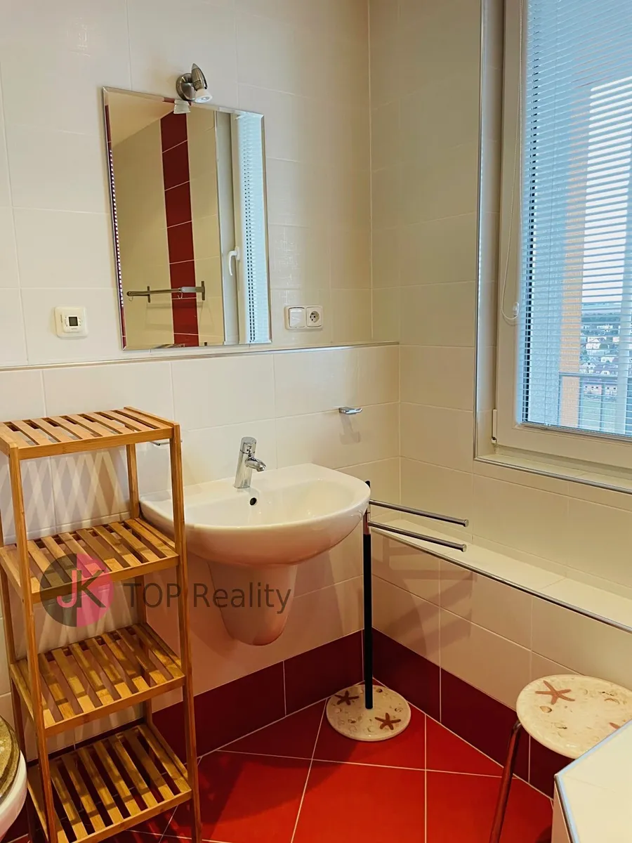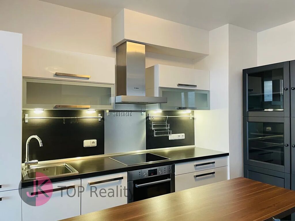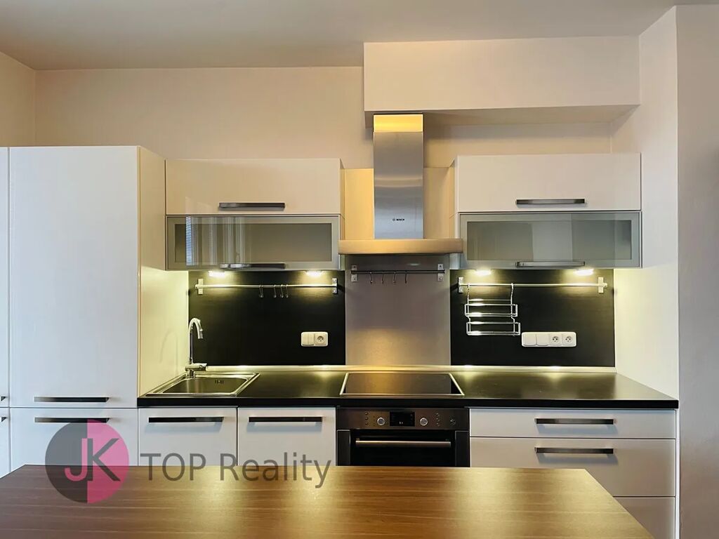 Exkluzivně nabízíme k pronájmu krásný byt s dispozicí 1+kk a rozloze 39,3 m2 + lodžie 15,2 m2 s nádherným výhledem, nacházející se v posledním 5. patře novostavby s výtahem. Byt je světlý, nízkoenergetický a orientovaný na jih. Byt je kompletně vybavený – nová kuchyňská linka s vestavěnými spotřebiči (sklokeramická deska, trouba, digestoř, myčka na nádobí, lednice s mrazákem). V obývacím pokoji jídelní stůl se židlemi, skříně, komody, postel, sofa, pracovní stůl se židlemi, TV stolek a TV. V Předsíni vestavěná šatní skříň, dále samostatná šatní skříň, botník, komoda. V koupelně rohová vana, umyvadlo se zrcadlem, WC a pračka. V bytě se nachází komora, vybavena regály. Rozměry místností: obývací pokoj + kk 24,1 m2, předsíň 7,7 m2, koupelna s WC 5,1 m2, komora 2,4 m2, lodžie 15,2 m2. Atraktivní lokalita s dobrou dostupností do centra města a s veškerou občanskou vybaveností v místě – škola, školka, restaurace, obchody aj. Výborná dostupnost MHD – 3 busem na metro „B“ Stodůlky nebo 8 min na metro „B“ Luka. Volné ihned. V případě zájmu kontaktujte realitního makléře.