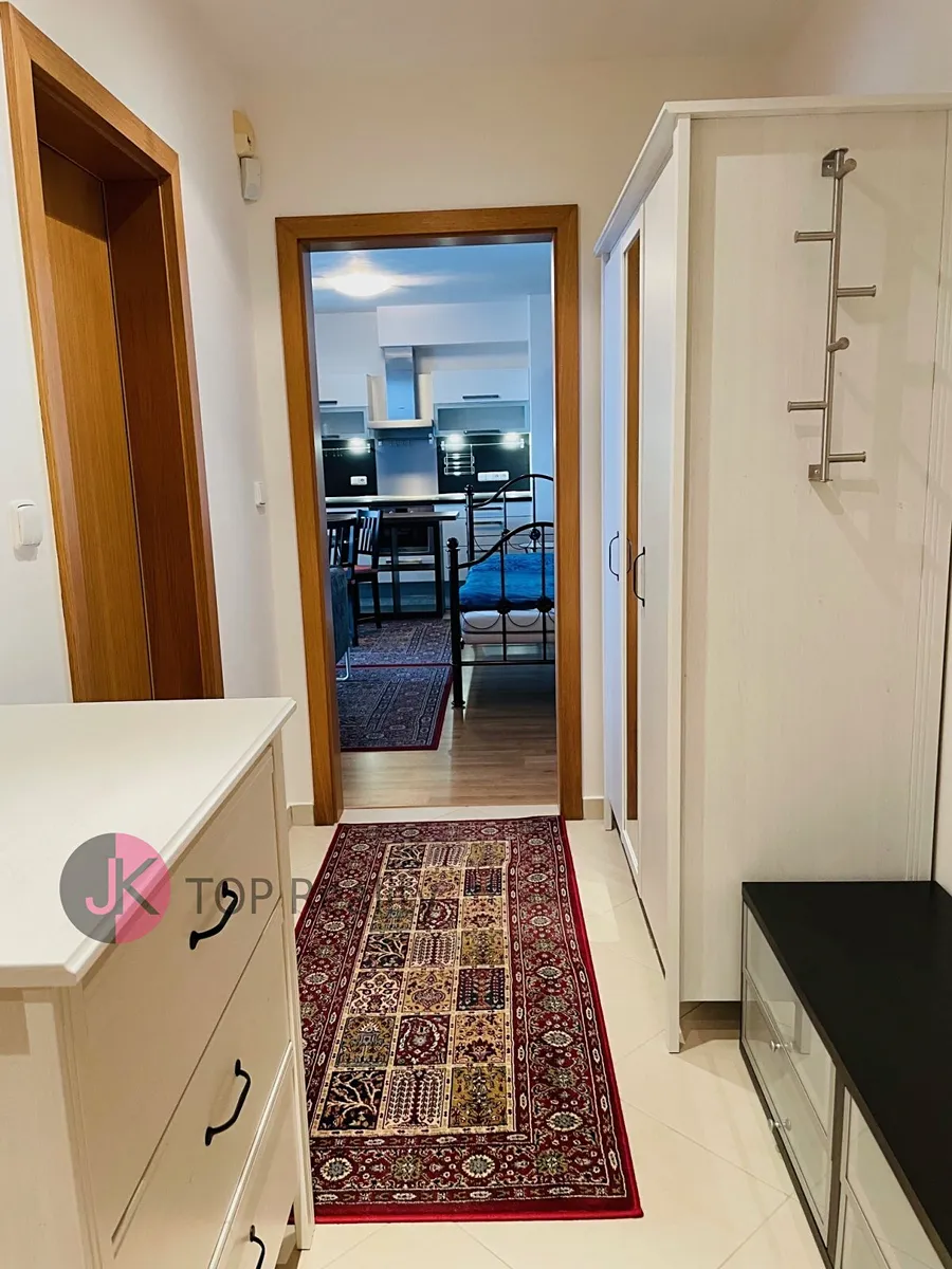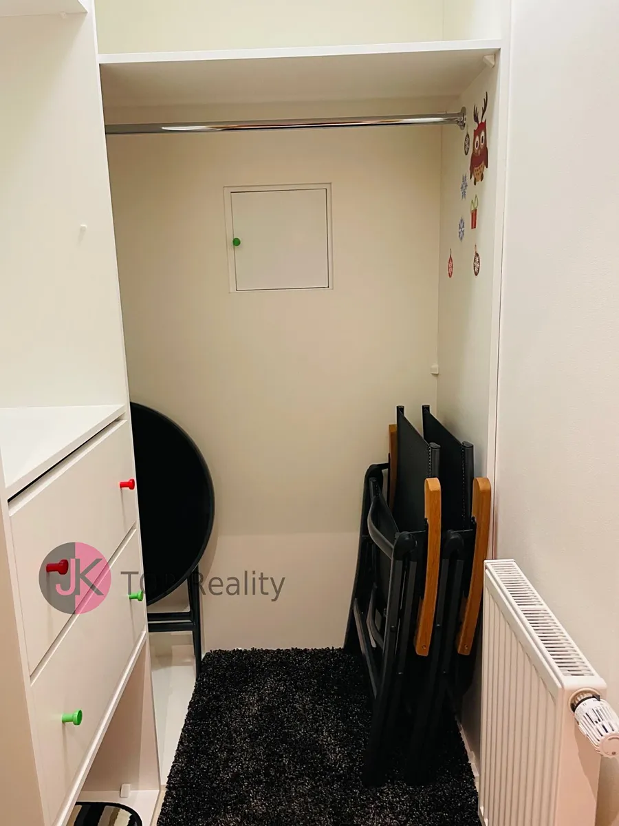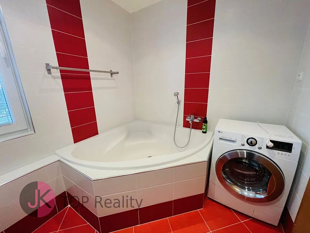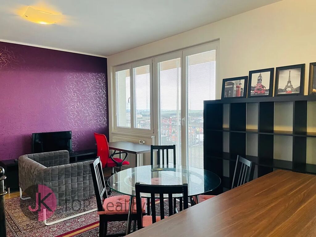 Exkluzivně nabízíme k pronájmu krásný byt s dispozicí 1+kk a rozloze 39,3 m2 + lodžie 15,2 m2 s nádherným výhledem, nacházející se v posledním 5. patře novostavby s výtahem. Byt je světlý, nízkoenergetický a orientovaný na jih. Byt je kompletně vybavený – nová kuchyňská linka s vestavěnými spotřebiči (sklokeramická deska, trouba, digestoř, myčka na nádobí, lednice s mrazákem). V obývacím pokoji jídelní stůl se židlemi, skříně, komody, postel, sofa, pracovní stůl se židlemi, TV stolek a TV. V Předsíni vestavěná šatní skříň, dále samostatná šatní skříň, botník, komoda. V koupelně rohová vana, umyvadlo se zrcadlem, WC a pračka. V bytě se nachází komora, vybavena regály. Rozměry místností: obývací pokoj + kk 24,1 m2, předsíň 7,7 m2, koupelna s WC 5,1 m2, komora 2,4 m2, lodžie 15,2 m2. Atraktivní lokalita s dobrou dostupností do centra města a s veškerou občanskou vybaveností v místě – škola, školka, restaurace, obchody aj. Výborná dostupnost MHD – 3 busem na metro „B“ Stodůlky nebo 8 min na metro „B“ Luka. Volné ihned. V případě zájmu kontaktujte realitního makléře.