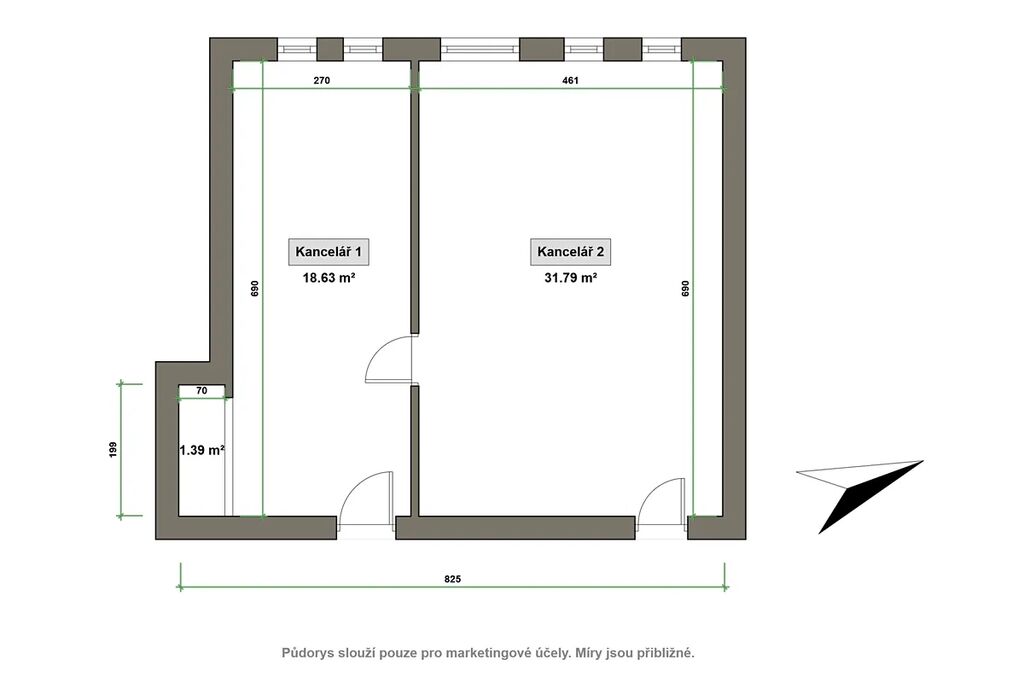 Možné koupit obě kanceláře dohromady, nebo i samostatně.