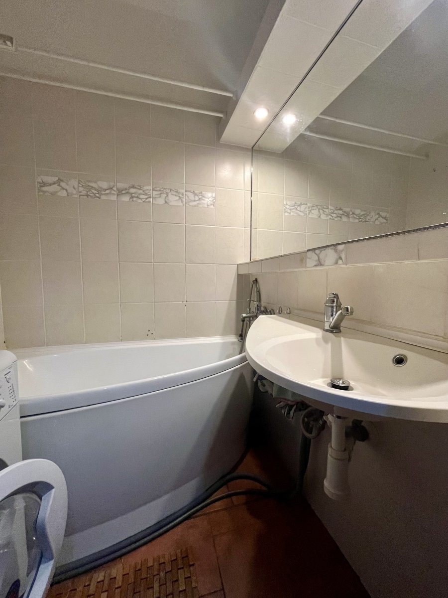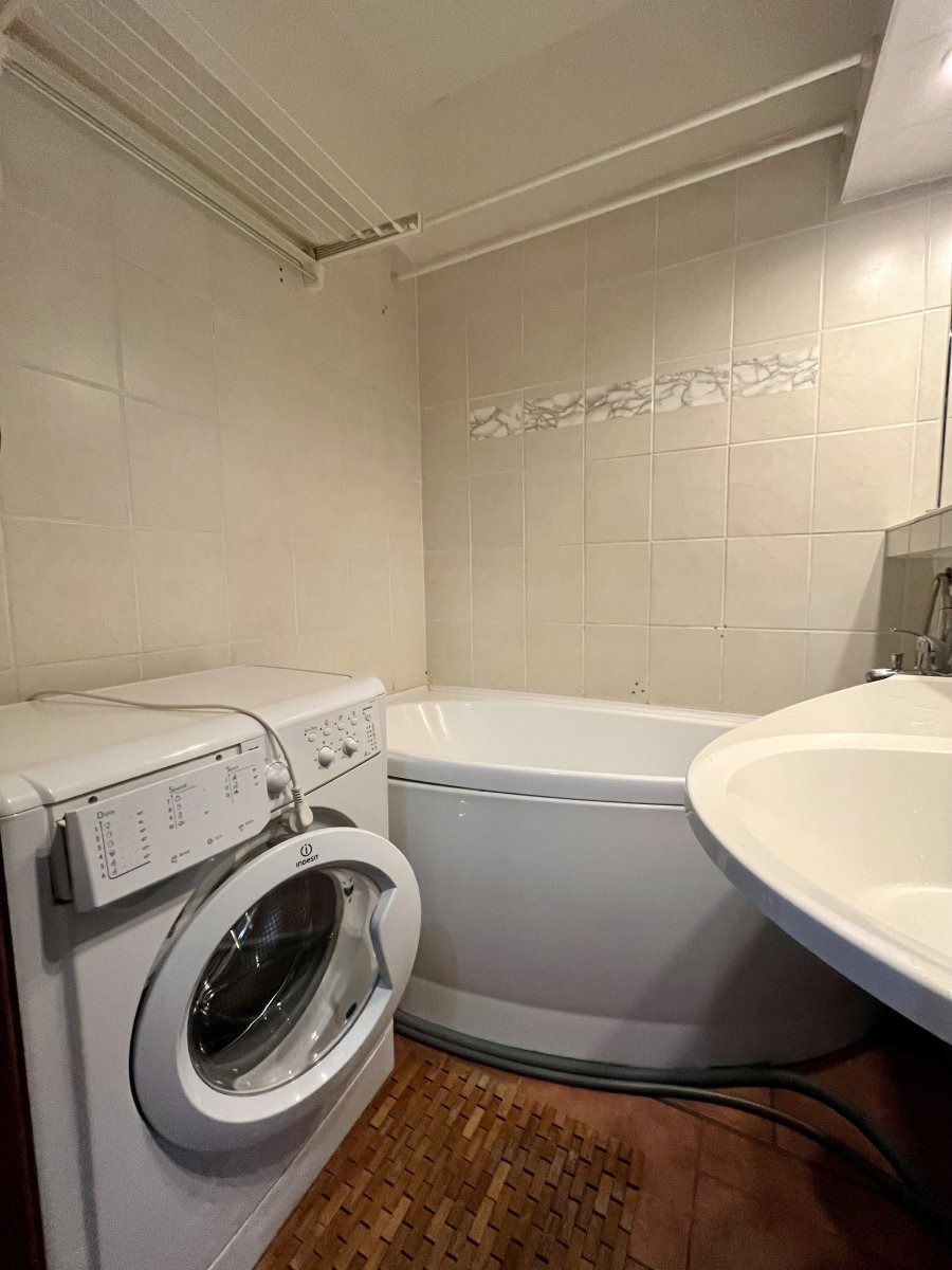 V koupelně najdeme vanu a pračku. Toaleta je umístěna samostatně.