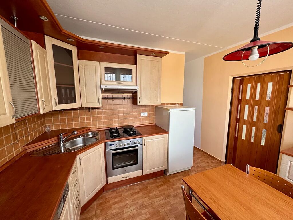 Byt o dispozici 3+1 a podlahové ploše 79 m² se nachází na sídlišti a zaručuje pohodlí a dostatek prostoru. Byt je situován v nejvyšším čtvrtém patře budovy bez výtahu. Nabízí prostornou lodžii s výměrou 5 m², která je ideální pro relaxaci na čerstvém vzduchu a poskytuje krásný výhled na okolí. Součástí bytu je také sklep o výměře 2 m², který nabízí další úložné prostory.