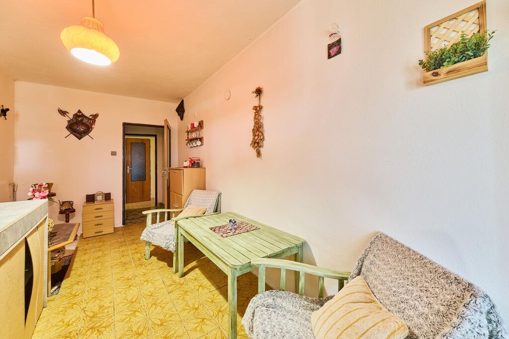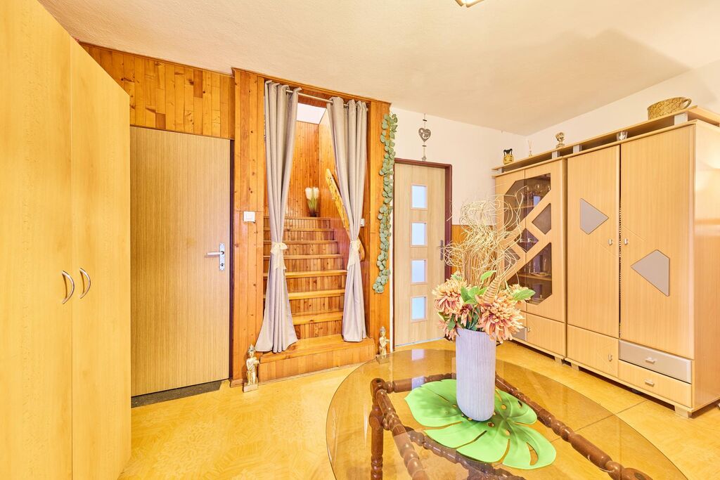 V 1. NP domu se nachází vchod, zádveří, hala, velký obývací pokoj se vstupem na terasu s krásným a na jih orientovaným výhledem na Trutnov, dále potom kuchyně, místnost wc a schodiště do 2. NP a suterénu.