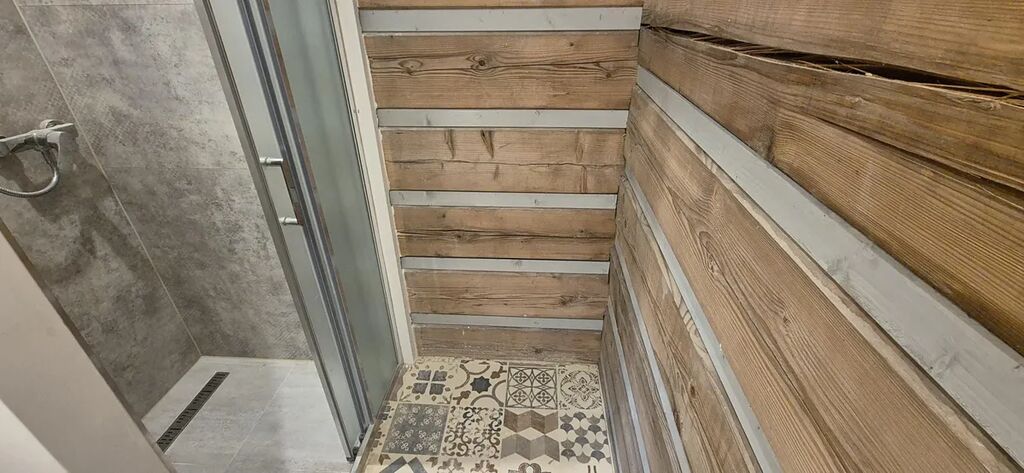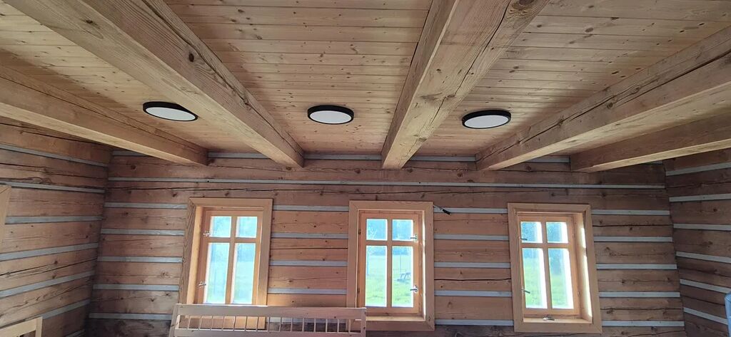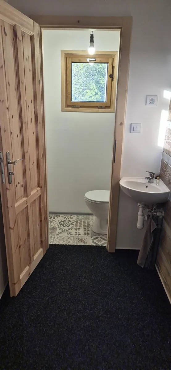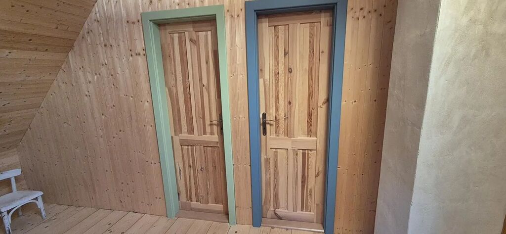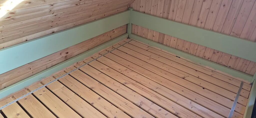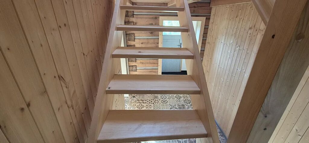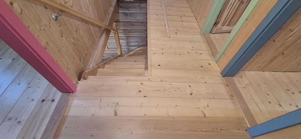 vybavená velkým jídelním stolem a lavicemi z masivu. Koupelna se sprchovým koutem a dřevěné schodiště vedoucí do parta se třemi pokoji vybavenými postelemi na míru. Vytápění je zajištěno novými krbovými kamny zn. Jotul s výkonem 9 kW, v koupelně je na stěně umístěno topné tělěso-žebřík, v patře je možné si přitopit v každém pokoji přímotopy. Ohřev vody el. bojlerem. Dotvoření interiéru dává možnost seberealizace dle vlastního vkusu.
