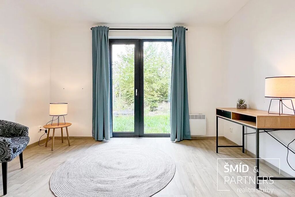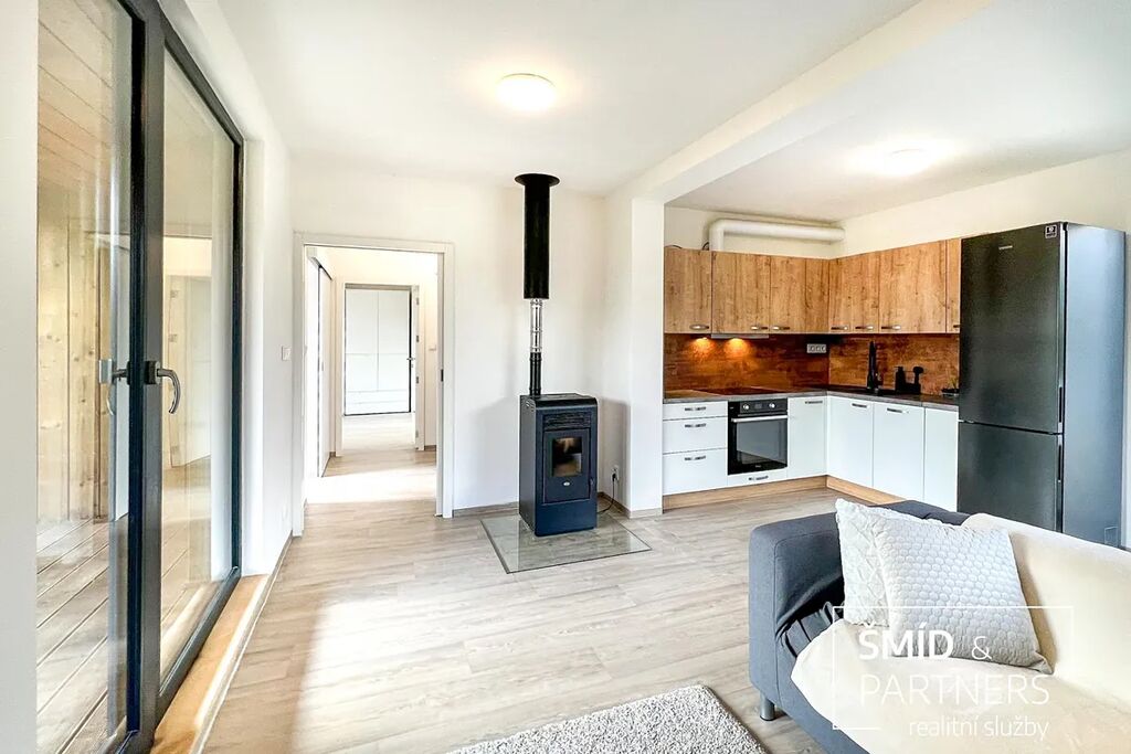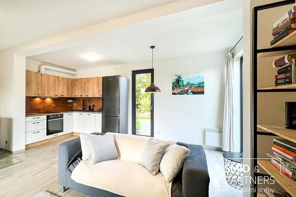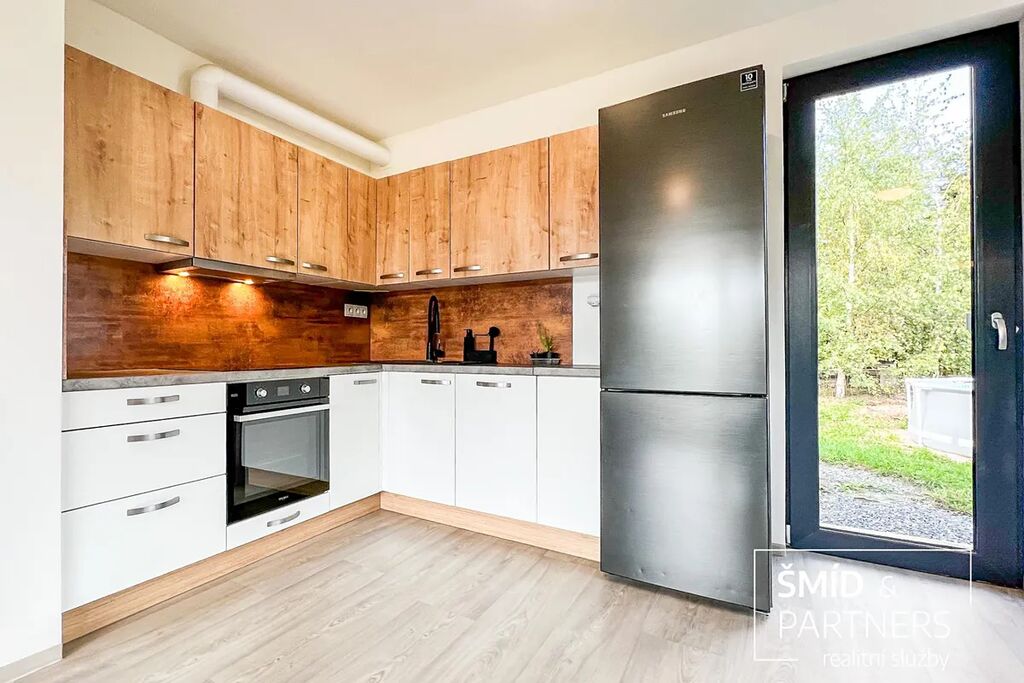 Obytná plocha činí 80 m2, z čehož na terasu připadá 15 m2. Dispozice je 3+kk s jednou koupelnou a toaletou, dvěma ložnicemi, obývacím pokojem s kuchyňským koutem a technickou místností. Samozřejmě zde nechybí vstupní chodba s prostorem pro šaty a obuv. Skvělými prvky domu jsou francouzská okna v každé z místností a krytá terasa navazující na obývací část. Kuchyň je vybavena standardními spotřebiči, jako je kombinovaná chladnička, myčka nádobí, trouba s varnou deskou či digestoř s venkovním odtahem. Podlahy jsou z odolného vinylu a jsou barevně sjednoceny v celé podlahové ploše.