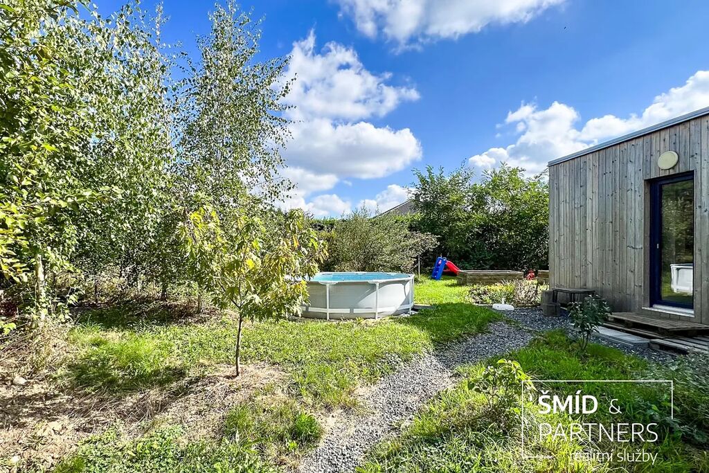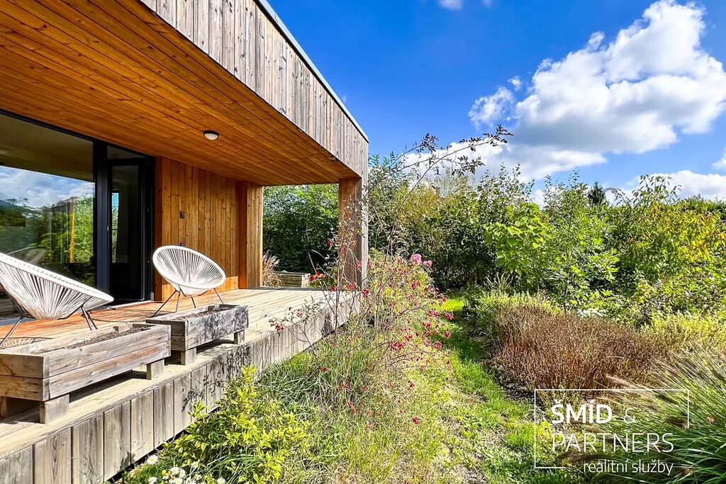 Naše kancelář zprostředkovává prodej velice atraktivního, moderního a ekologického domu v krásné oblasti Posázaví. Tento dům, postavený firmou Blokki specializující se na modulové a modulární stavby domů upcyklací lodních kontejnerů, se nachází v obci Užice - Čekánov v blízkém sousedství města Sázava. Čekánov je skvělé místo pro trávení aktivního života, k čemuž inspiruje okolní příroda s ikonickou řekou Sázavou, rozlehlými lesy a místy nabízejícími mnoho outdoorových aktivit. Pokud hledáte jen klidné útočiště, pak Vám rozlehlá, více než patnáct set metrů velká, zahrada obklopující dům nabídne notnou dávku soukromí a klidu. Zahrada je svou vlastní kapitolou. Je, jak již bylo zmíněno, opravdu prostorově bohatě dimenzovaná a pečlivě vybudovaná jako permakulturní na základě principů přírodních zahrad. Tento koncept zahrad využívá trvale udržitelný a samostatně se obnovující systém bez zásahů, jako jsou např. postřiky proti škůdcům nebo ruční plení. Přestože permakulturní zahrady jsou převážně užitkové, dokáží plnit i funkci okrasnou, čehož je tato zahrada jasným důkazem. Nespornou výhodou je její menší náročnost na údržbu a zálivku, velká druhová rozmanitost s velkým podílem rostlin, které dokáží majitele téměř celoročně zásobit výpěstky. Na zahradě se kromě skleníku, vyvýšených záhonů a plochy pro dětské hraní nachází také velmi praktická stavba dílny (ateliéru), která může sloužit skvěle i jako samostatná pracovna či případně domek pro hosty. Je zde zavedena elektřina a taktéž voda. K ukládání zahradního, sportovního či jiného vybavení jsou k dispozici další dva montované zahradní domky.
