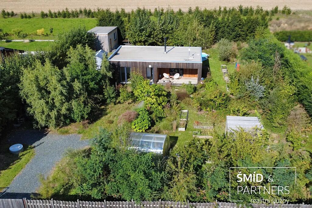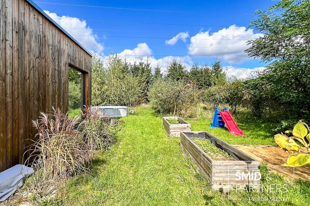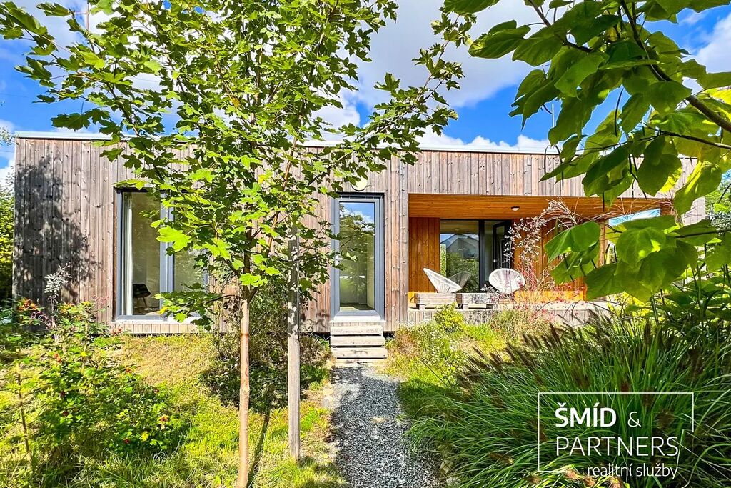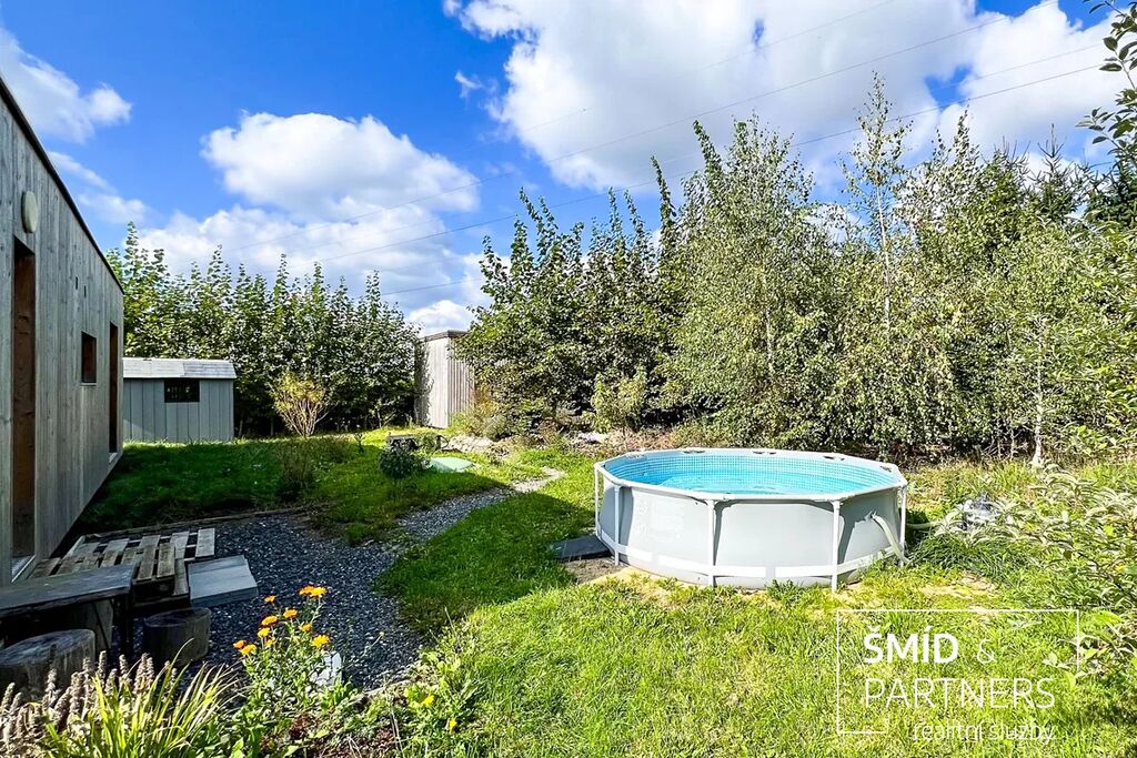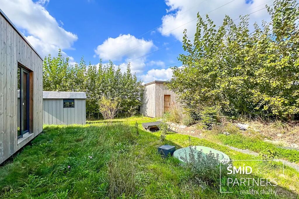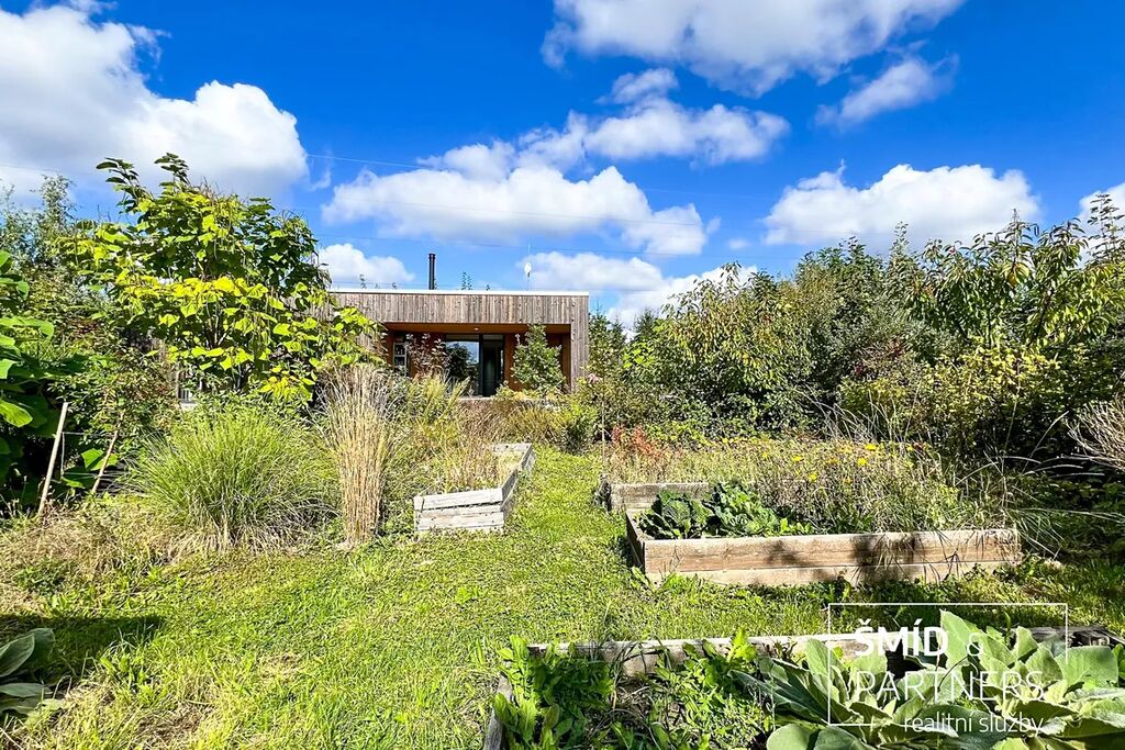 Naše kancelář zprostředkovává prodej velice atraktivního, moderního a ekologického domu v krásné oblasti Posázaví. Tento dům, postavený firmou Blokki specializující se na modulové a modulární stavby domů upcyklací lodních kontejnerů, se nachází v obci Užice - Čekánov v blízkém sousedství města Sázava. Čekánov je skvělé místo pro trávení aktivního života, k čemuž inspiruje okolní příroda s ikonickou řekou Sázavou, rozlehlými lesy a místy nabízejícími mnoho outdoorových aktivit. Pokud hledáte jen klidné útočiště, pak Vám rozlehlá, více než patnáct set metrů velká, zahrada obklopující dům nabídne notnou dávku soukromí a klidu. Zahrada je svou vlastní kapitolou. Je, jak již bylo zmíněno, opravdu prostorově bohatě dimenzovaná a pečlivě vybudovaná jako permakulturní na základě principů přírodních zahrad. Tento koncept zahrad využívá trvale udržitelný a samostatně se obnovující systém bez zásahů, jako jsou např. postřiky proti škůdcům nebo ruční plení. Přestože permakulturní zahrady jsou převážně užitkové, dokáží plnit i funkci okrasnou, čehož je tato zahrada jasným důkazem. Nespornou výhodou je její menší náročnost na údržbu a zálivku, velká druhová rozmanitost s velkým podílem rostlin, které dokáží majitele téměř celoročně zásobit výpěstky. Na zahradě se kromě skleníku, vyvýšených záhonů a plochy pro dětské hraní nachází také velmi praktická stavba dílny (ateliéru), která může sloužit skvěle i jako samostatná pracovna či případně domek pro hosty. Je zde zavedena elektřina a taktéž voda. K ukládání zahradního, sportovního či jiného vybavení jsou k dispozici další dva montované zahradní domky.
