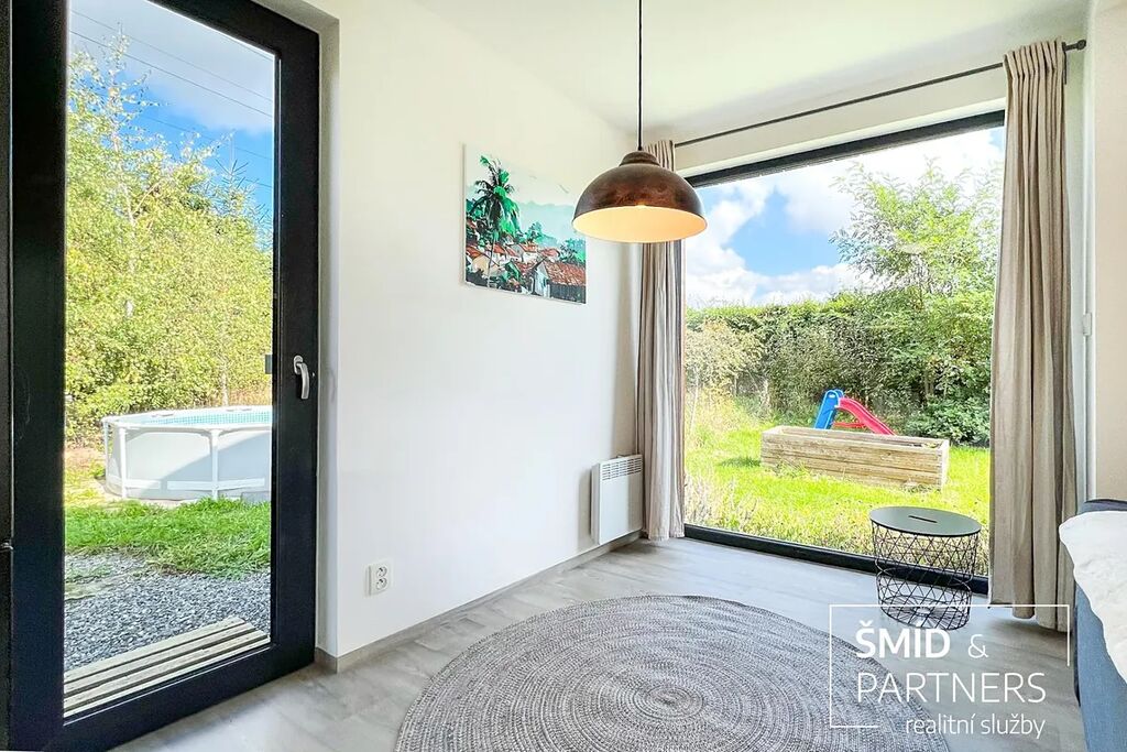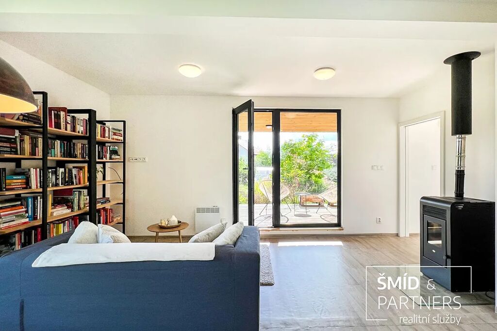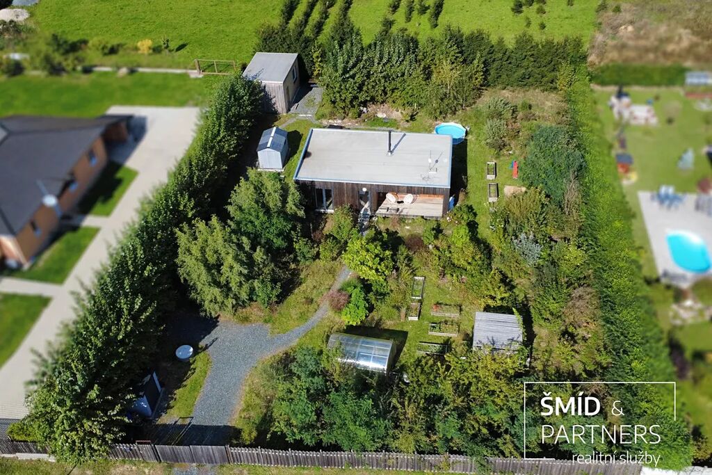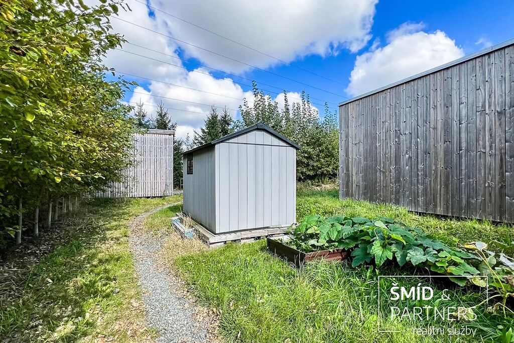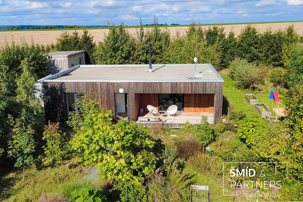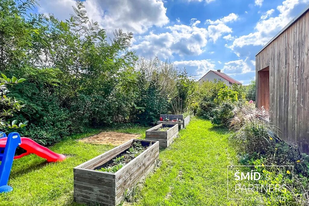 Naše kancelář zprostředkovává prodej velice atraktivního, moderního a ekologického domu v krásné oblasti Posázaví. Tento dům, postavený firmou Blokki specializující se na modulové a modulární stavby domů upcyklací lodních kontejnerů, se nachází v obci Užice - Čekánov v blízkém sousedství města Sázava. Čekánov je skvělé místo pro trávení aktivního života, k čemuž inspiruje okolní příroda s ikonickou řekou Sázavou, rozlehlými lesy a místy nabízejícími mnoho outdoorových aktivit. Pokud hledáte jen klidné útočiště, pak Vám rozlehlá, více než patnáct set metrů velká, zahrada obklopující dům nabídne notnou dávku soukromí a klidu. Zahrada je svou vlastní kapitolou. Je, jak již bylo zmíněno, opravdu prostorově bohatě dimenzovaná a pečlivě vybudovaná jako permakulturní na základě principů přírodních zahrad. Tento koncept zahrad využívá trvale udržitelný a samostatně se obnovující systém bez zásahů, jako jsou např. postřiky proti škůdcům nebo ruční plení. Přestože permakulturní zahrady jsou převážně užitkové, dokáží plnit i funkci okrasnou, čehož je tato zahrada jasným důkazem. Nespornou výhodou je její menší náročnost na údržbu a zálivku, velká druhová rozmanitost s velkým podílem rostlin, které dokáží majitele téměř celoročně zásobit výpěstky. Na zahradě se kromě skleníku, vyvýšených záhonů a plochy pro dětské hraní nachází také velmi praktická stavba dílny (ateliéru), která může sloužit skvěle i jako samostatná pracovna či případně domek pro hosty. Je zde zavedena elektřina a taktéž voda. K ukládání zahradního, sportovního či jiného vybavení jsou k dispozici další dva montované zahradní domky.