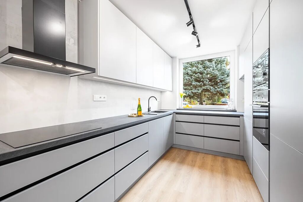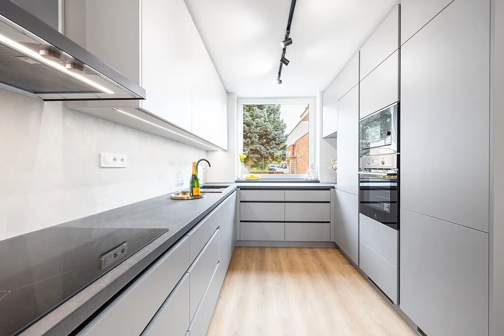 - nová kuchyňská linka vyrobena na míru se spotřebiči (značková elektrická trouba, myčka, indukční deska, digestoř, osvětlení, dřez)