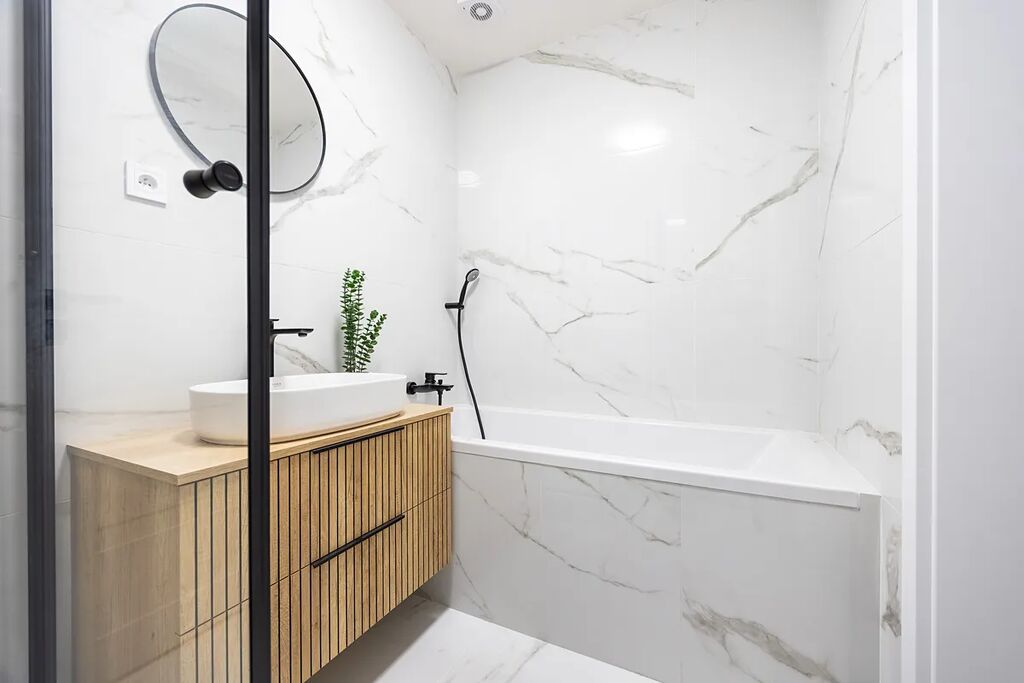 - nová sanita (vana, sprchový kout, umyvadlo, skříňka, toaleta)