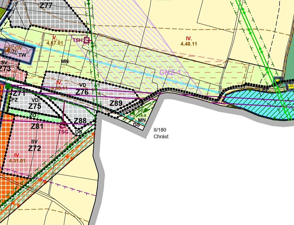 Podmíněně přípustné: pěstování trvalých porostů, ochranná zeleň