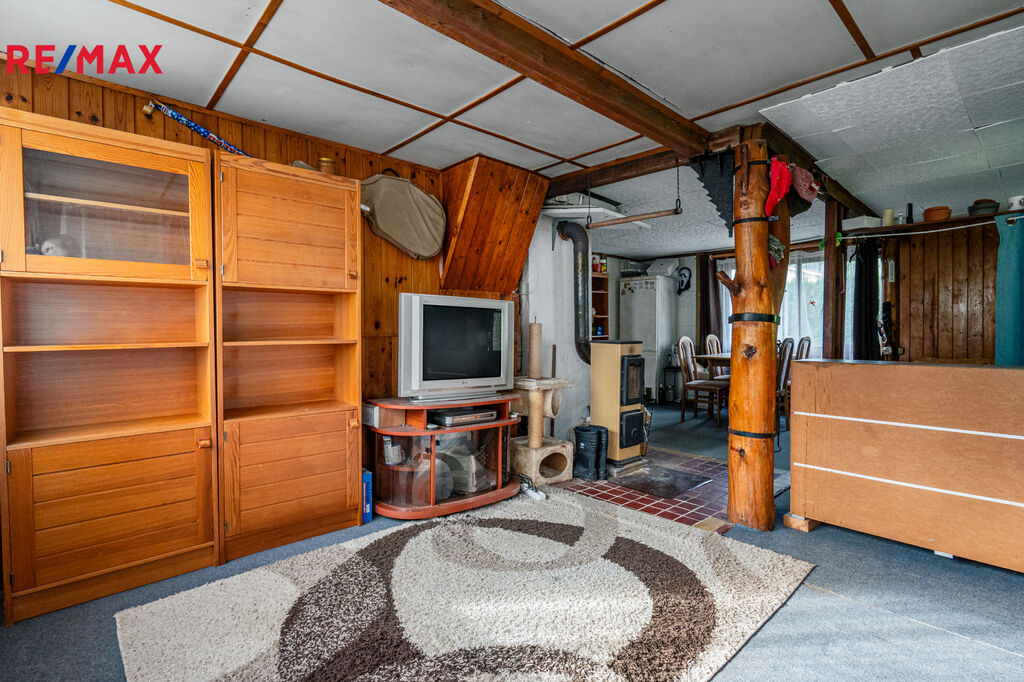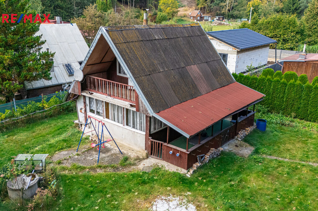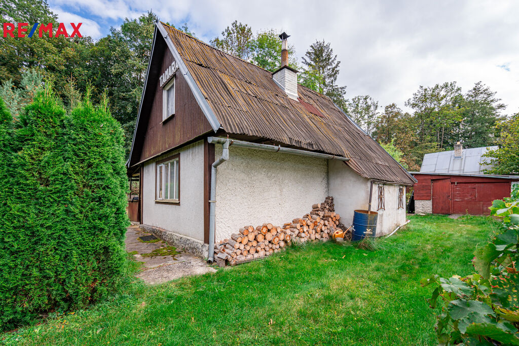 Chata s podkrovím, má zastavěnou plochu 37 m2 a užitnou plochu cca 55 m2.