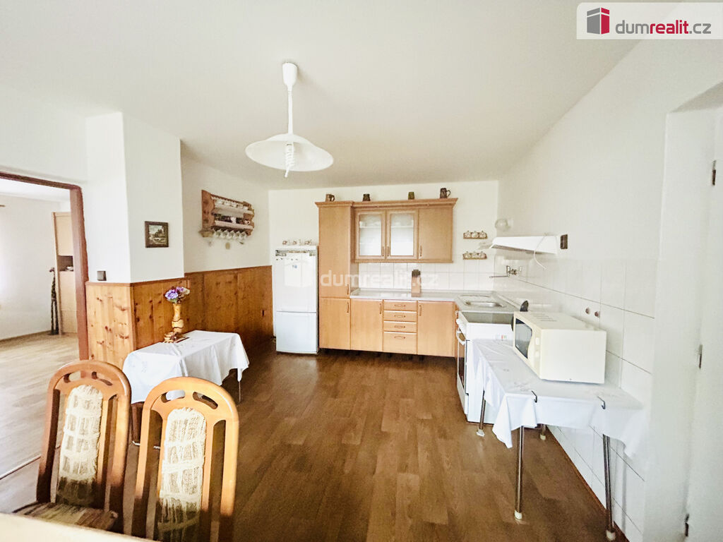 Dumrealit.cz Vám zprostředkuje prodej rodinného domu v městysu Netvořice , okres Benešov. Dům má dispozici 3+1, na prostorné půdě možnost vybudování podkroví a je částečně podsklepen. Vytápění domu je ústřední, kotlem na tuhá paliva, voda přivedena do objektu z obecního vodovodu, na pozemku též vlastní studna, kanalizace. Rodinný dům v průběhu let prošel částečnou renovací ( plastová okna, rozvody elektro - měď, střešní krytina. Na pozemku se dále nachází dřevěná pergola, nadzemní bazén a přístřešek na osobní automobil. Zahrada je udržovaná, se vzrostlými ovocnými stromy.
