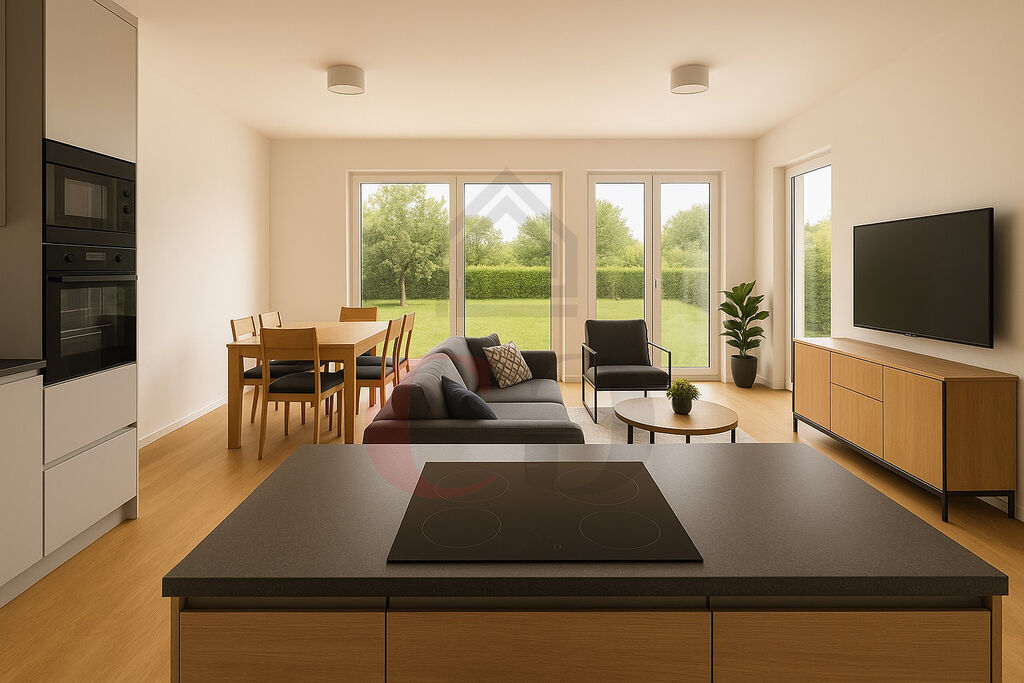 • prostorný obývací pokoj s kuchyní a přímým vstupem na terasu,