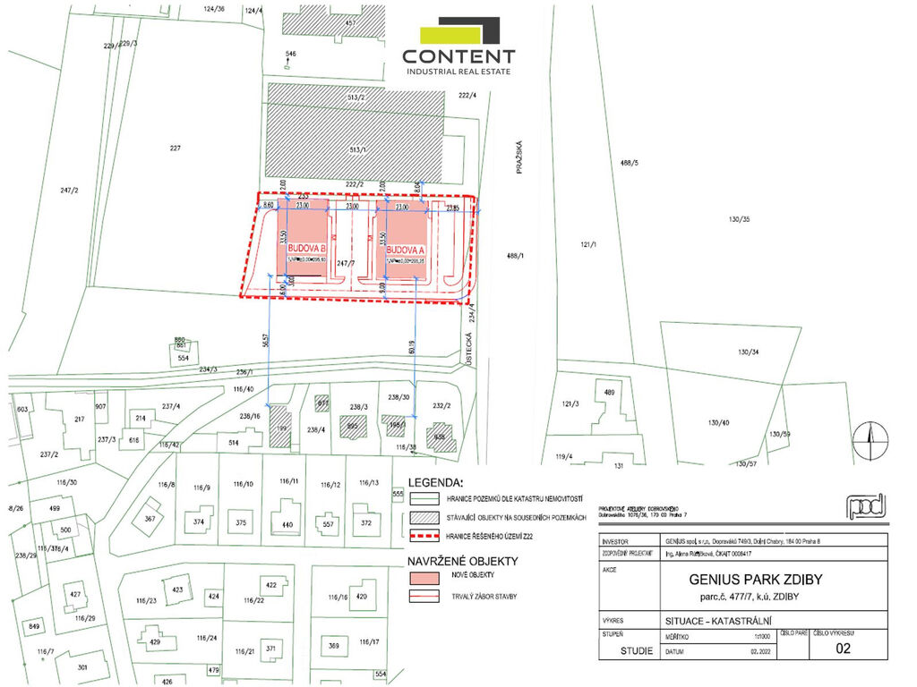 - zastavěná plocha budovami 1541 m², územní plán dovoluje až 2280 m²