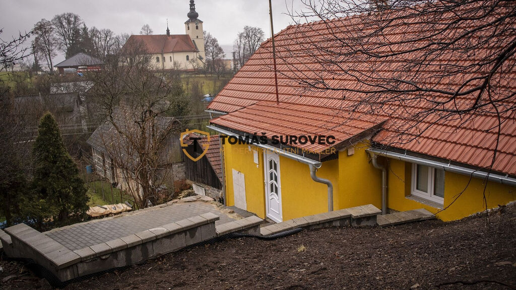 Z interiéru chalupy se naskýtá výhled na obě dominanty obce – hrad a kostel. Zahrada s kamennou zídkou a zbudovaným prostorným posezením včetně venkovního osvětlení vybízí k zahradničení i grilování.
