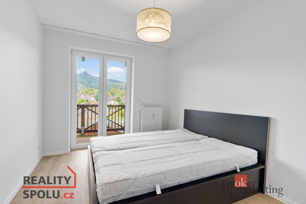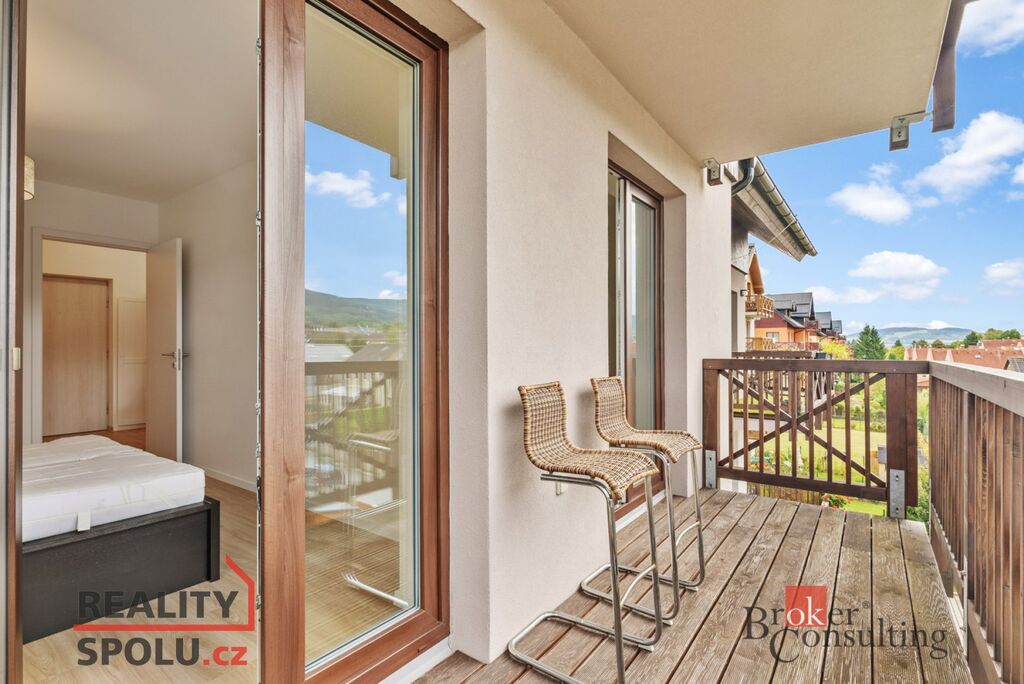 • Balkón je přístupný z obývacího pokoje i z ložnice, s okouzlujícím výhledem na Ještěd