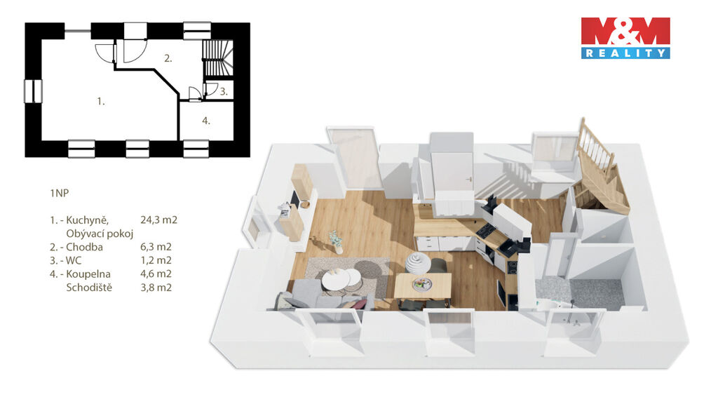 Hledáte domov, kde si odpočinete od ruchu města, ale přitom budete mít Prahu na dosah? Pak vás nadchne tento rodinný dům o užitné ploše 84 m² v obci Podlešín, okres Kladno. Dům s dispozicí 3+kk stojí na pozemku o velikosti 346 m² a nabízí klid, soukromí a příjemnou atmosféru. V přízemí se nachází chodba, obývací pokoj s kuchyňským koutem, koupelna a WC. V podkroví jsou 2 pokoje a koupelna s WC. Dům je napojen na elektřinu, vodu i kanalizaci, vytápění zajišťuje kotel na tuhá paliva, plyn na hranici pozemku. Interiér prošel rekonstrukcí v roce 2014 včetně nové střechy. Na pozemku najdete studnu, sklípky, dílnu, zahradní domek a kryté posezení s krbem a udírnou. Menší zahrádka poslouží k pěstování vlastní zeleniny.