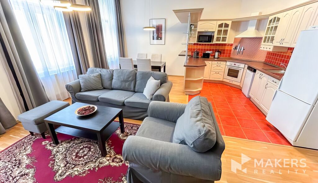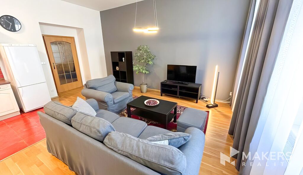 Nabízíme k dlouhodobému pronájmu krásný zařízení byt a velice útulný byt 3+kk o celkové ploše 80 m2, který se nachází ve 3. patře cihlového domu s výtahem v Sázavské ulici, Praha 2 - Vinohrady.